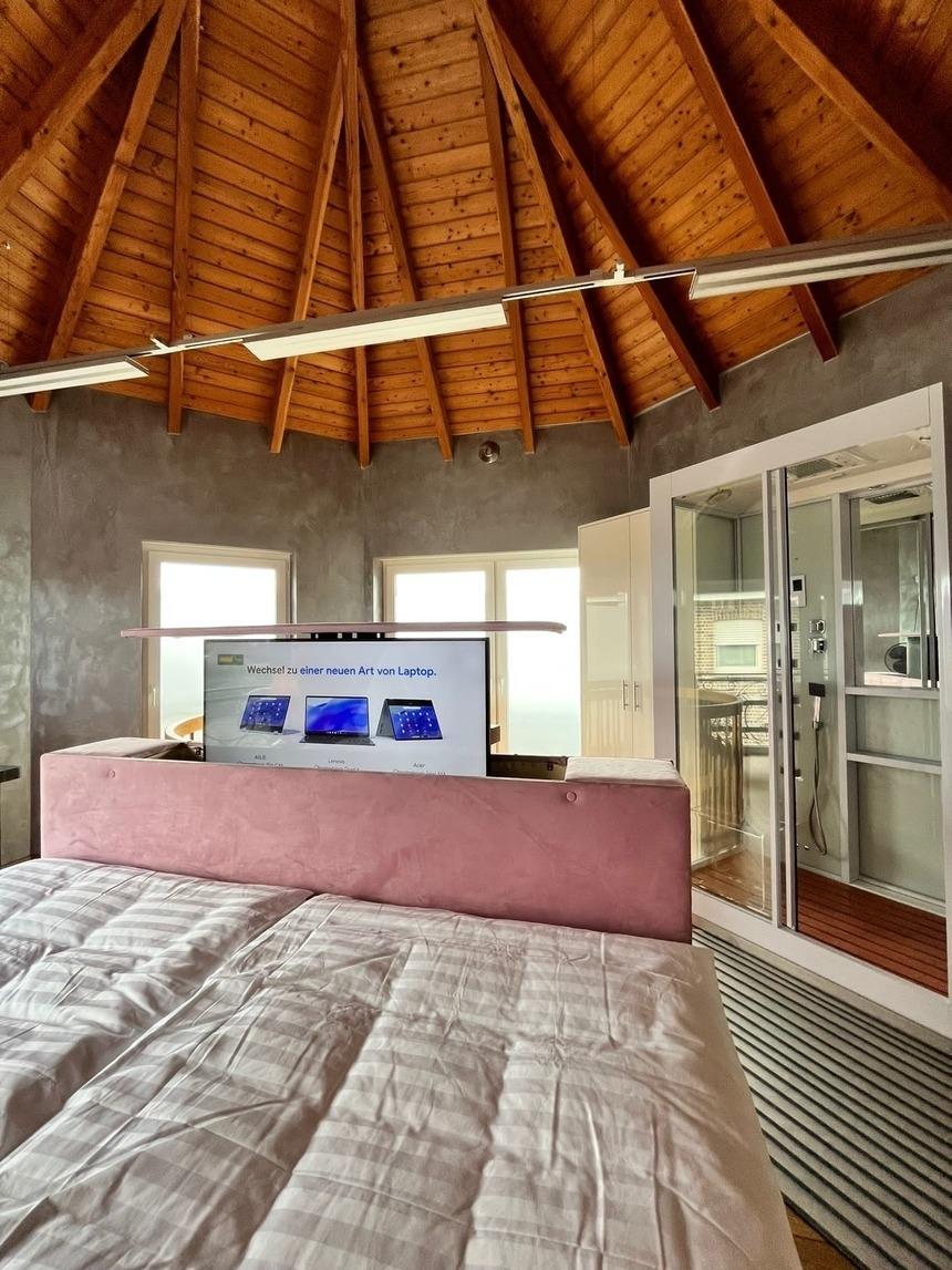 Das Licht und die Rollos werden in der gesamten Wohnung per iPhone bedient. Das iPhone lässt sich mit dem Pin 1111 öffnen und anschließend wird die App Shelly geöffnet, hier können Sie das Erdgeschoss und das Obergeschoss steuern. Bei Abreise wird der Schlüssel wieder in das Schließfach gelegt.