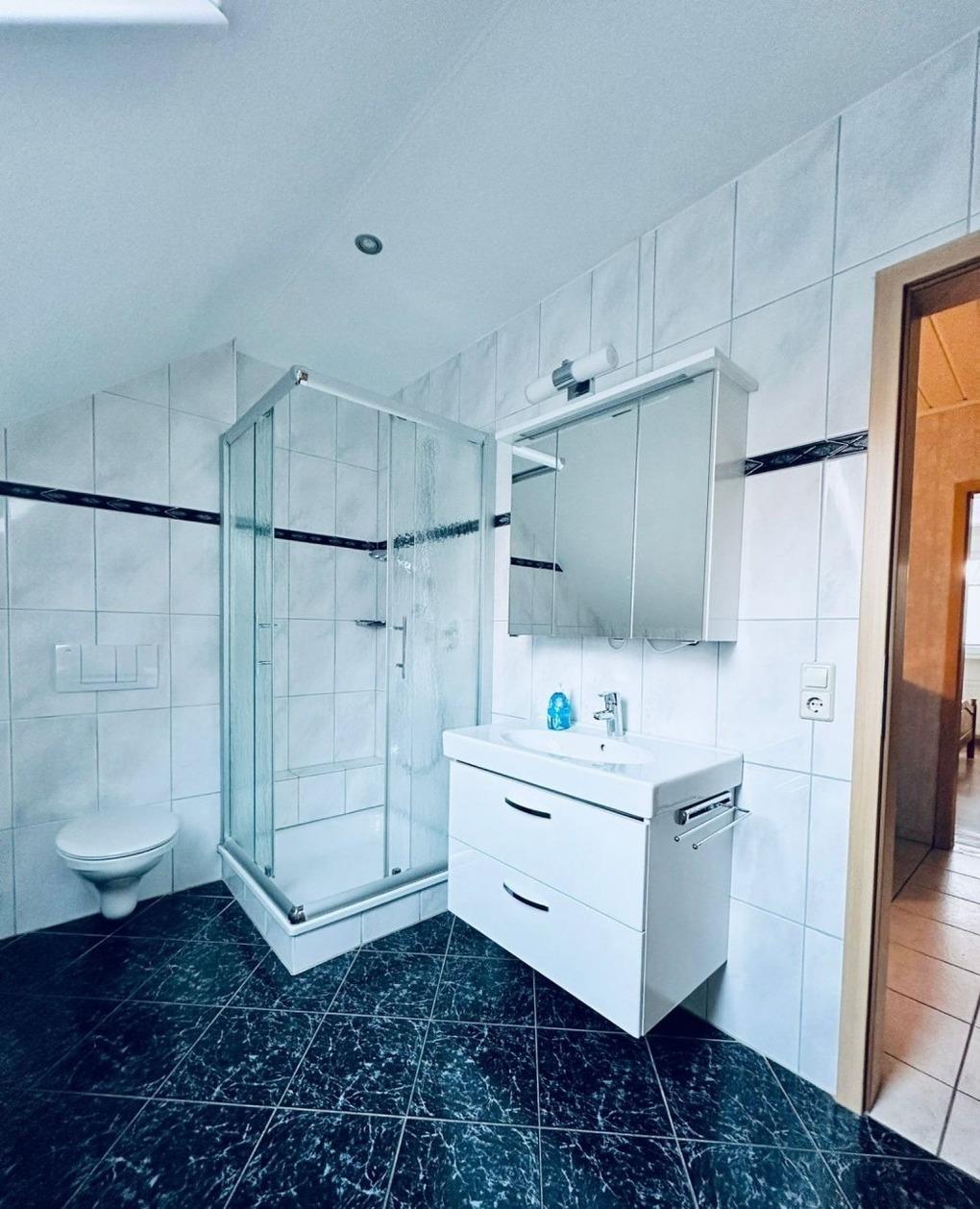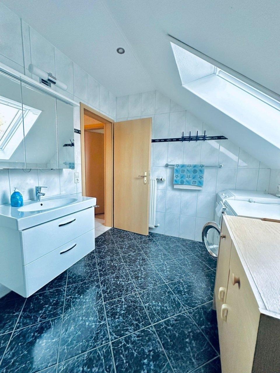 Ebenso ein Bad mit Dusche, WC, Waschmaschine und Trockner.