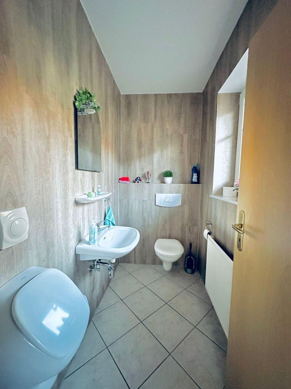 Ein Gäste-WC und ein Abstellraum liegen ebenfalls im Erdgeschoss .