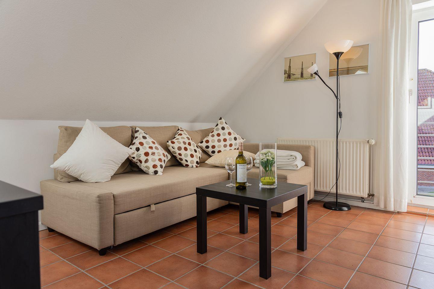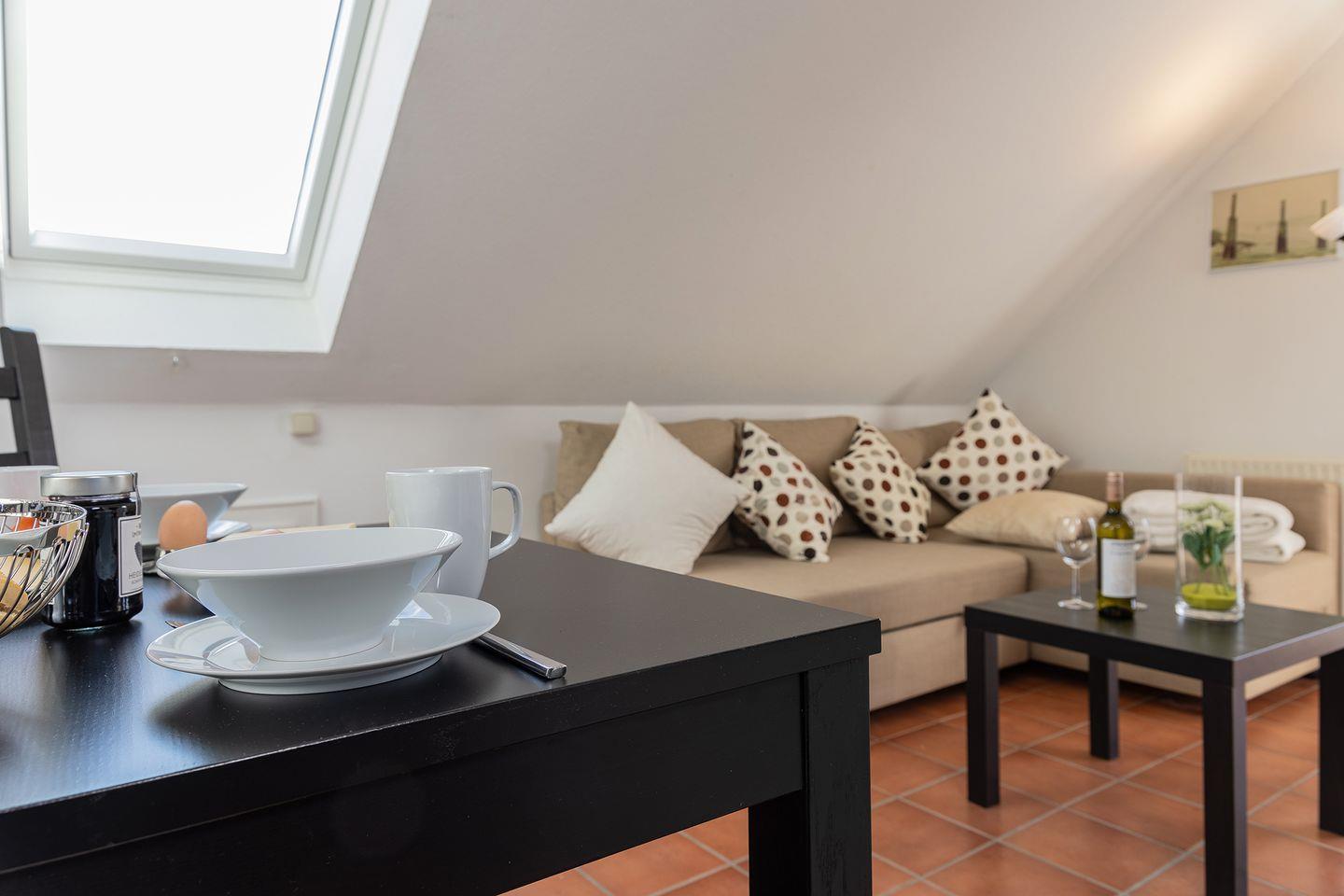 Gemütlicher Wohn-/Essbereich mit Sat-TV.