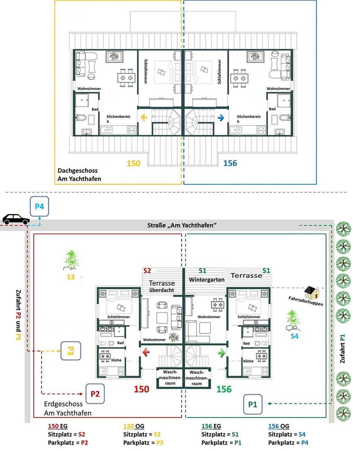 PKW-Abstellplatz direkt am Haus, Abstellraum für Fahrräder etc.