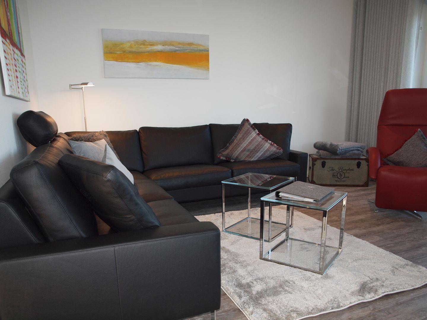 Die Seeperle Harleblick bietet auf 97 m² modernen Wohnkomfort mit offenem Wohn- und Essbereich, zwei Schlafzimmern und zwei Bädern. Genießen Sie den privaten Balkon, die Terrasse mit Gartenmöbeln, Wellness mit Infrarotkabine sowie einen direkten Blick auf den Fluss Harle. Der Sandstrand ist nur 500 Meter entfernt, Einkaufsmöglichkeiten und Restaurants sind bequem erreichbar.