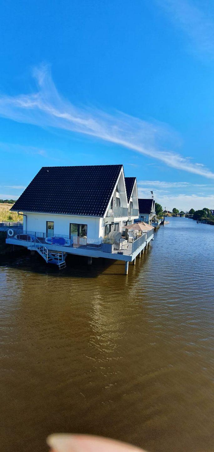 Sie wohnen, mit max. 4 Personen (+ 1 Baby) auf 97 qm, direkt über dem Wasser der Harle. Ein eigener Zugangssteg führt auf das mit Wasser umgebene Pfahlhaus mit besonderem Charakter.