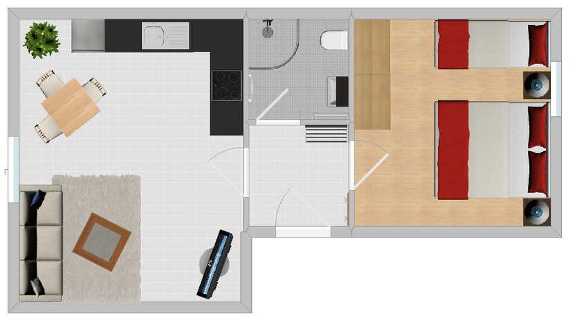 - Wohn-/Schlafzimmer, 25 m², 1 Person