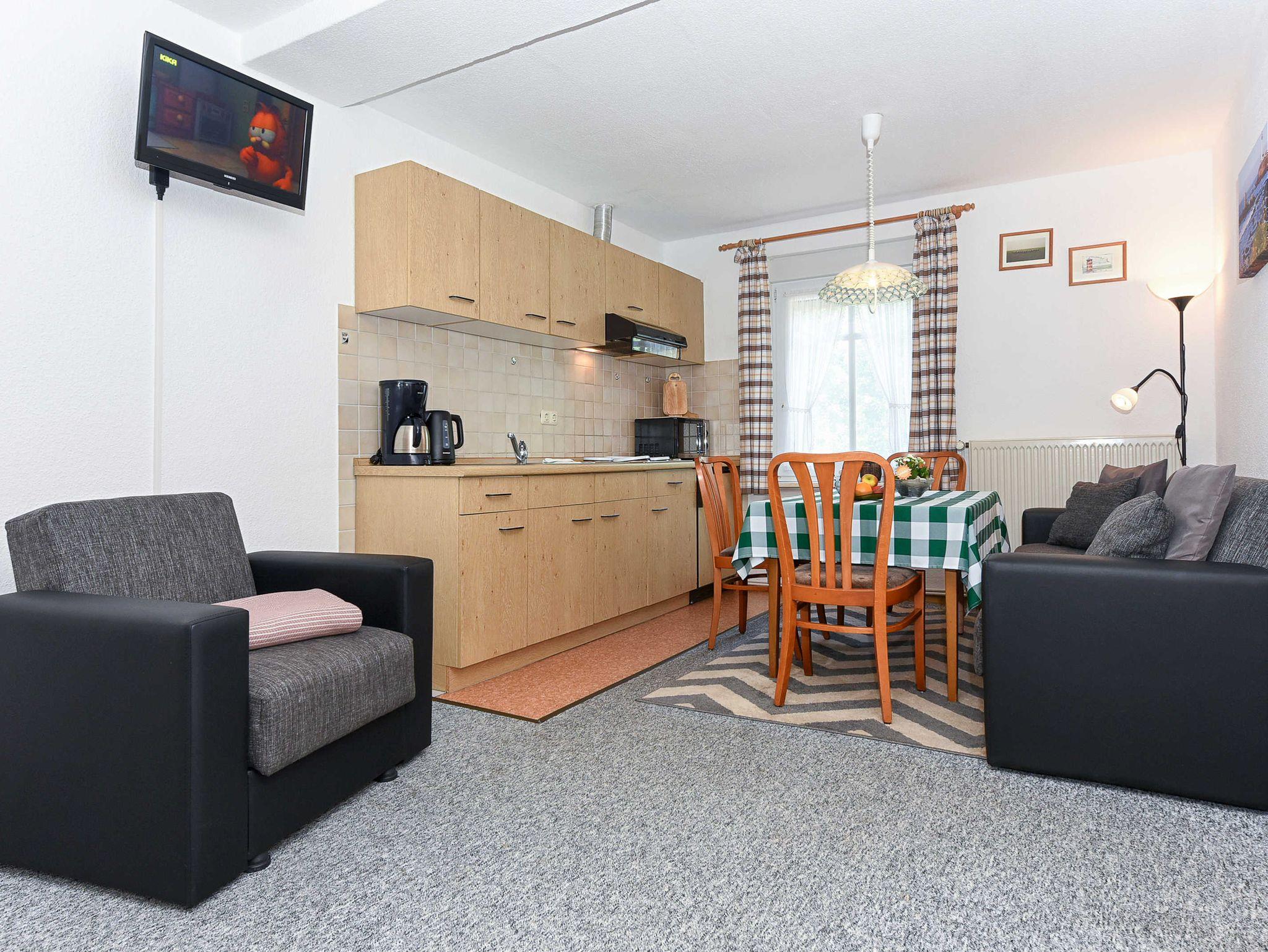 Größe ca. 50 Quadratmeter, Wohnraum mit integrierter Küche, Schlafzimmer, Kinderzimmer, Badezimmer mit, Dusche, Waschtisch und WC, Obergeschoss, Garten, optimal für 2 bis 4 Personen und zusätzlich ein Kleinkind.