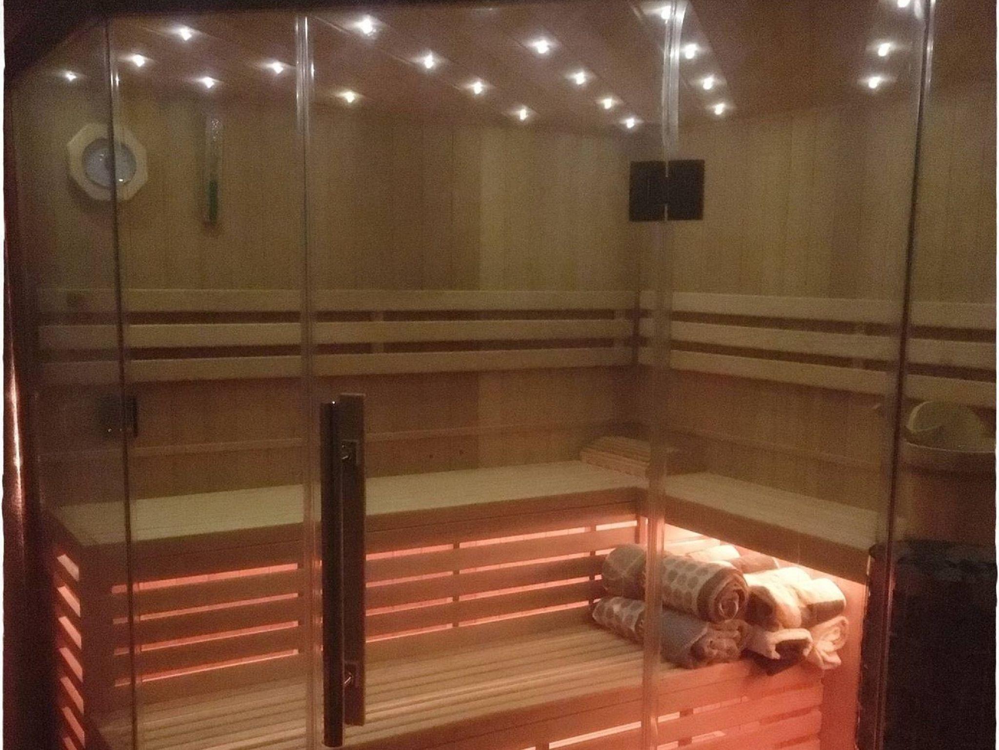 Ein echtes Highlight ist das großzügige Badezimmer mit Regendusche, 3D-Spiegel und integrierter Ganzglas-Sauna. Gegen eine kleine Gebühr genießen Gäste hier Farblicht, Sternenhimmel und Wellness-Feeling mit Ausblick. Haustiere sind aus Rücksicht auf Allergiker nicht erlaubt – und das komplett eingezäunte Gelände hält tierische Besucher fern.