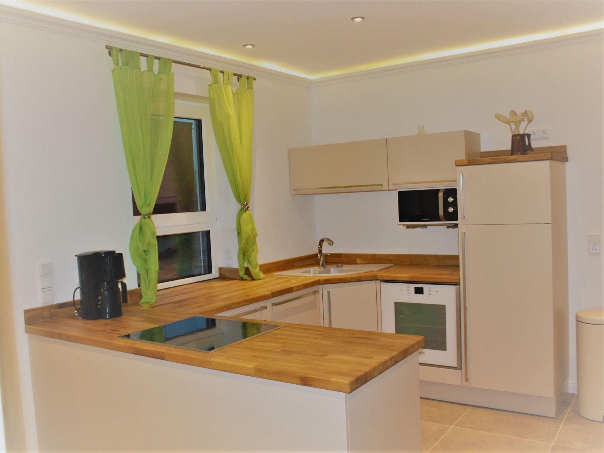 Das Apartment verfügt über einen offenen Wohn- und Essbereich mit integrierter, moderner Küche und direktem Zugang zur eigenen Terrasse mit Weitblick. Ein separates Schlafzimmer und ein großzügiges Badezimmer mit Regendusche und privater Sauna runden die Raumaufteilung ab. Das XL-Schlafsofa im Wohnbereich bietet bei Bedarf Platz für zwei weitere Personen. Zur Ausstattung gehören Induktionskochfeld, Mikrowelle, Spülmaschine, Smart-TV und WLAN. Zwei PKW-Stellplätze, davon einer überdacht, stehen auf dem eingezäunten Grundstück zur Verfügung. Highlights sind die private Ganzglas-Sauna mit Farblicht und Sternenhimmel, die gemütliche Leseecke mit wechselnder Bibliothek sowie der sichere Zugang per Code-Schloss. Haustiere sind nicht erlaubt, was den Aufenthalt besonders allergikerfreundlich macht.
