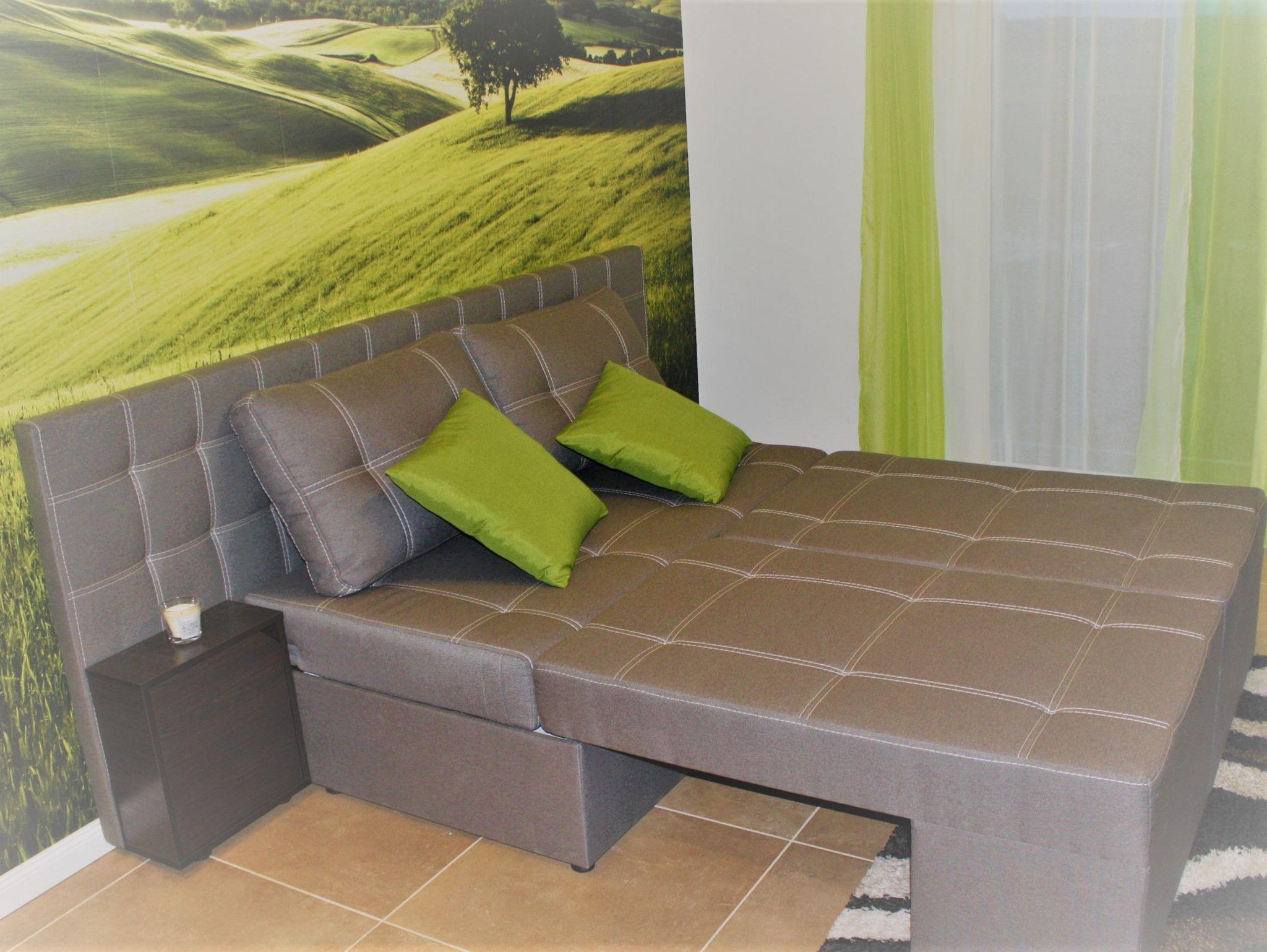 Der helle Wohn- und Essbereich mit romantischer Lichtstimmung verbindet sich harmonisch mit der modernen, voll ausgestatteten Küche – ideal für gemeinsame Kochmomente. Das XL-Schlafsofa verwandelt sich im Handumdrehen in ein zusätzliches Doppelbett im Boxspring-Look. Im Schlafzimmer sorgen warme Farben, eine gemütliche Leseecke und die kleine Bibliothek für erholsame Stunden – ob mit einem Buch oder einem Film.