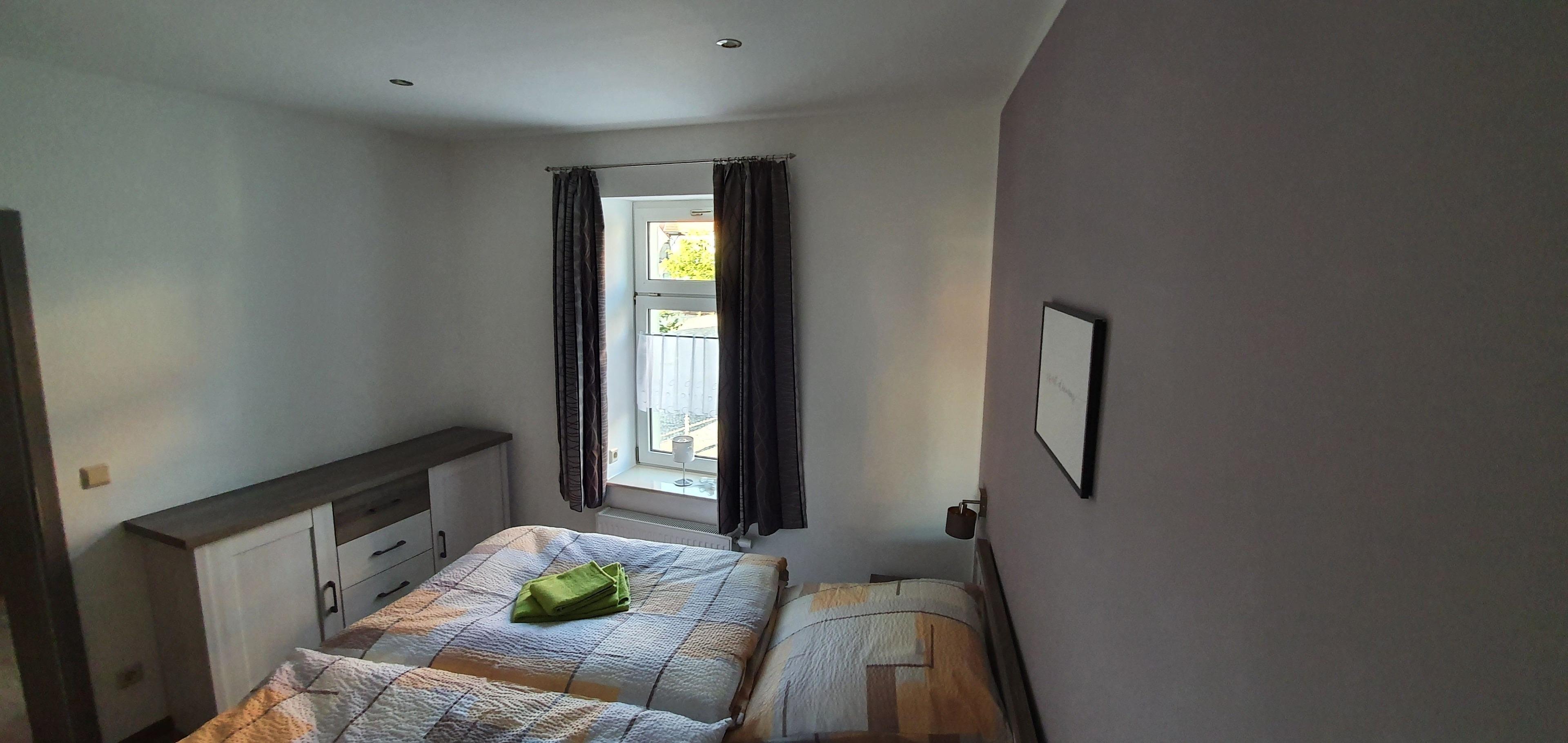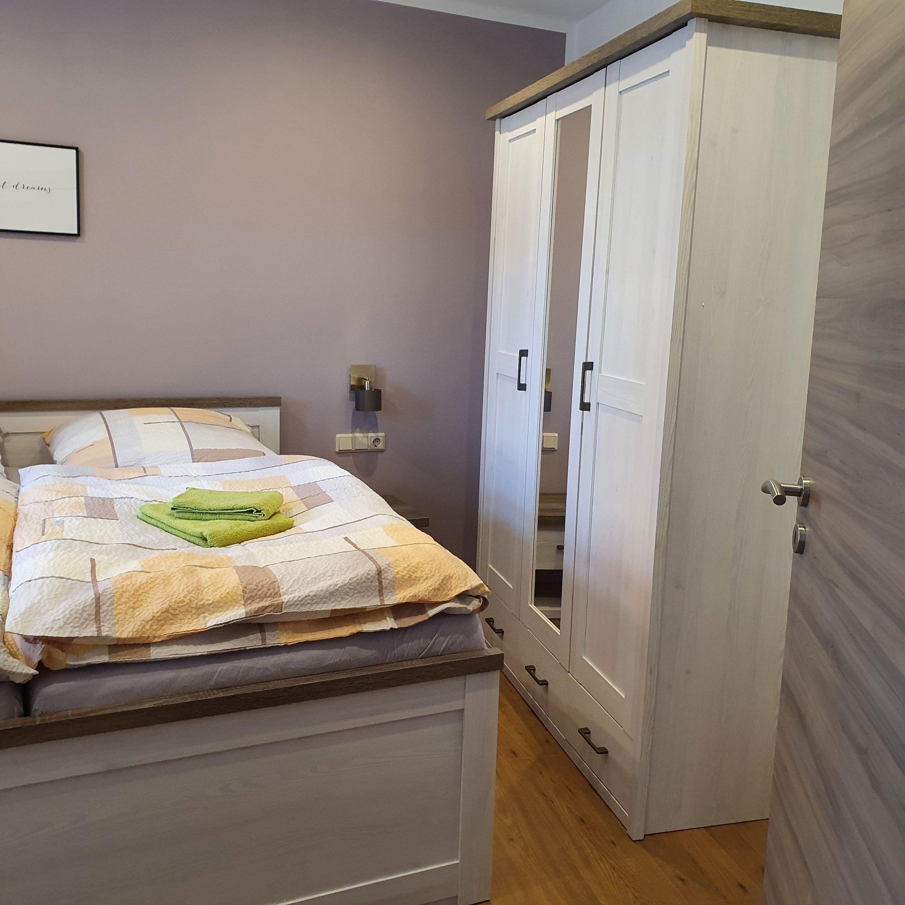 Im zweiten Schlafzimmer befindet sich ein Doppelbett, Kleiderschrank und Kommode.