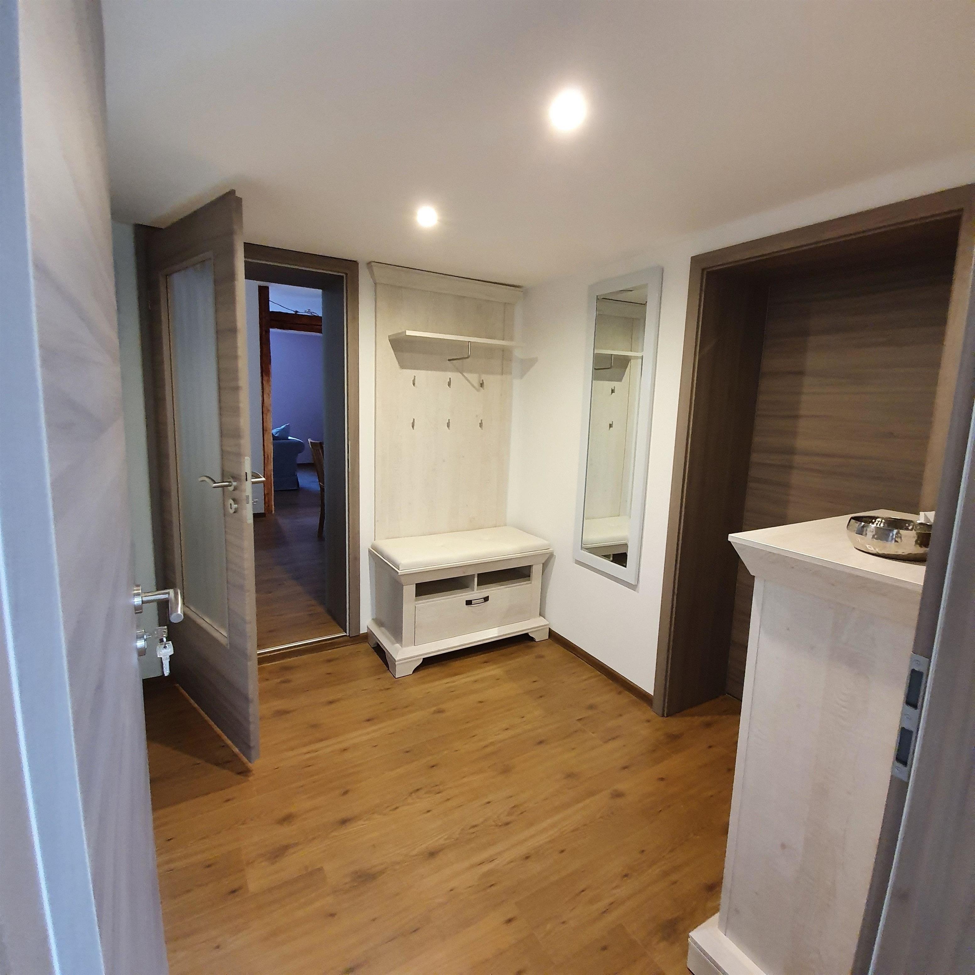 Die Wohnung ist hell, freundlich und modern eingerichtet und verfügt über Esszimmer, Wohnzimmer, offene Einbauküche, modernes Bad mit Fussbodenheizung, zwei Schlafzimmer, sowie einem Zimmer mit Babybett und Doppelstockbett (für Erwachsene oder Kinder), freies W-LAN steht Ihnen zur Verfügung.