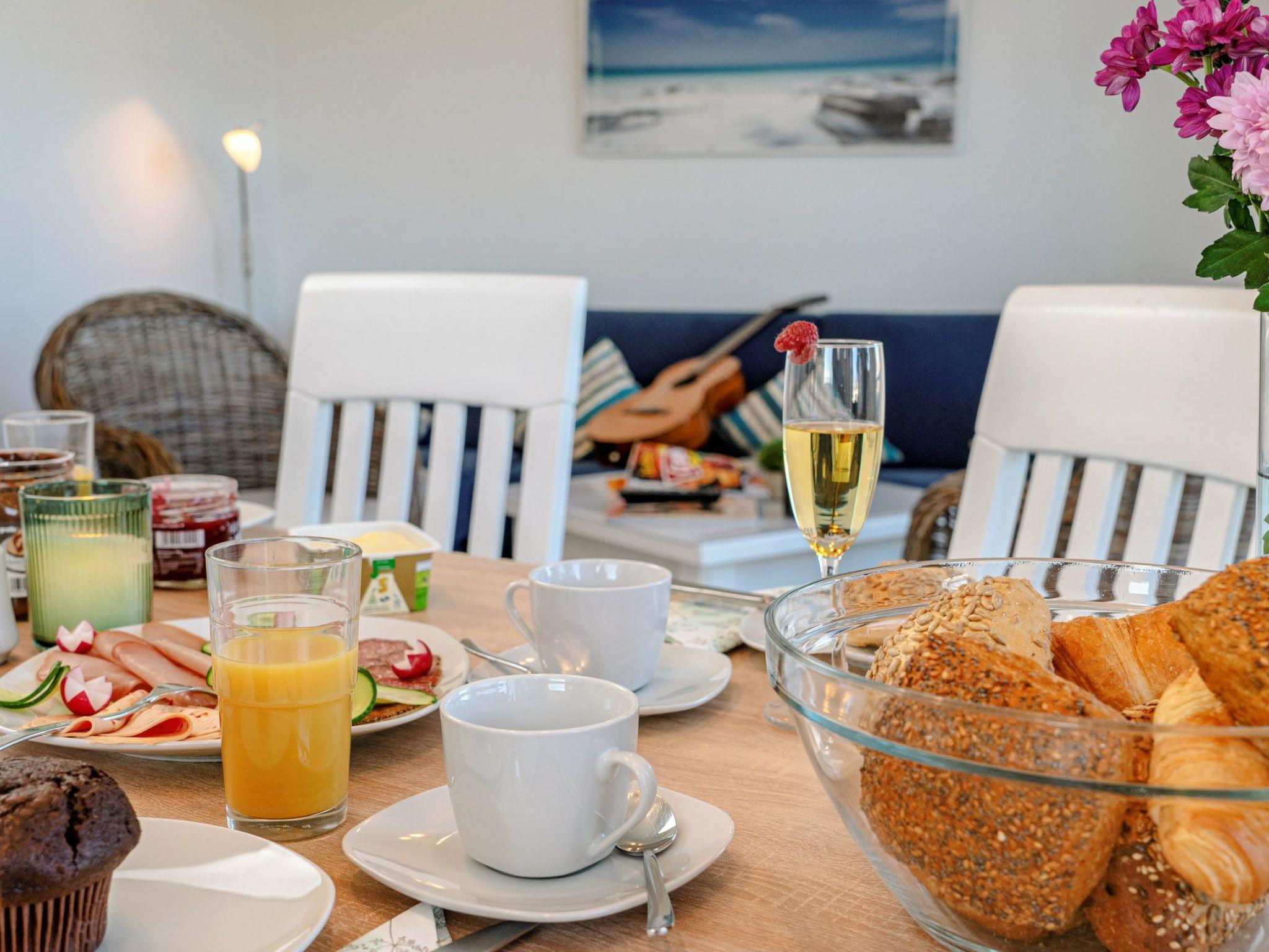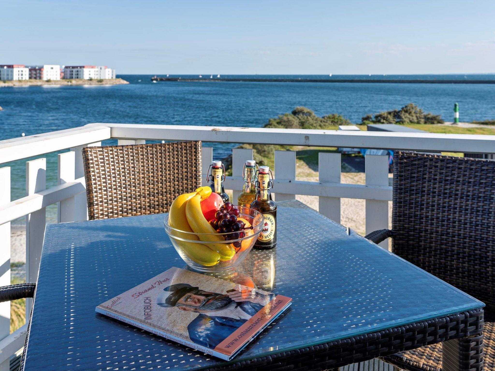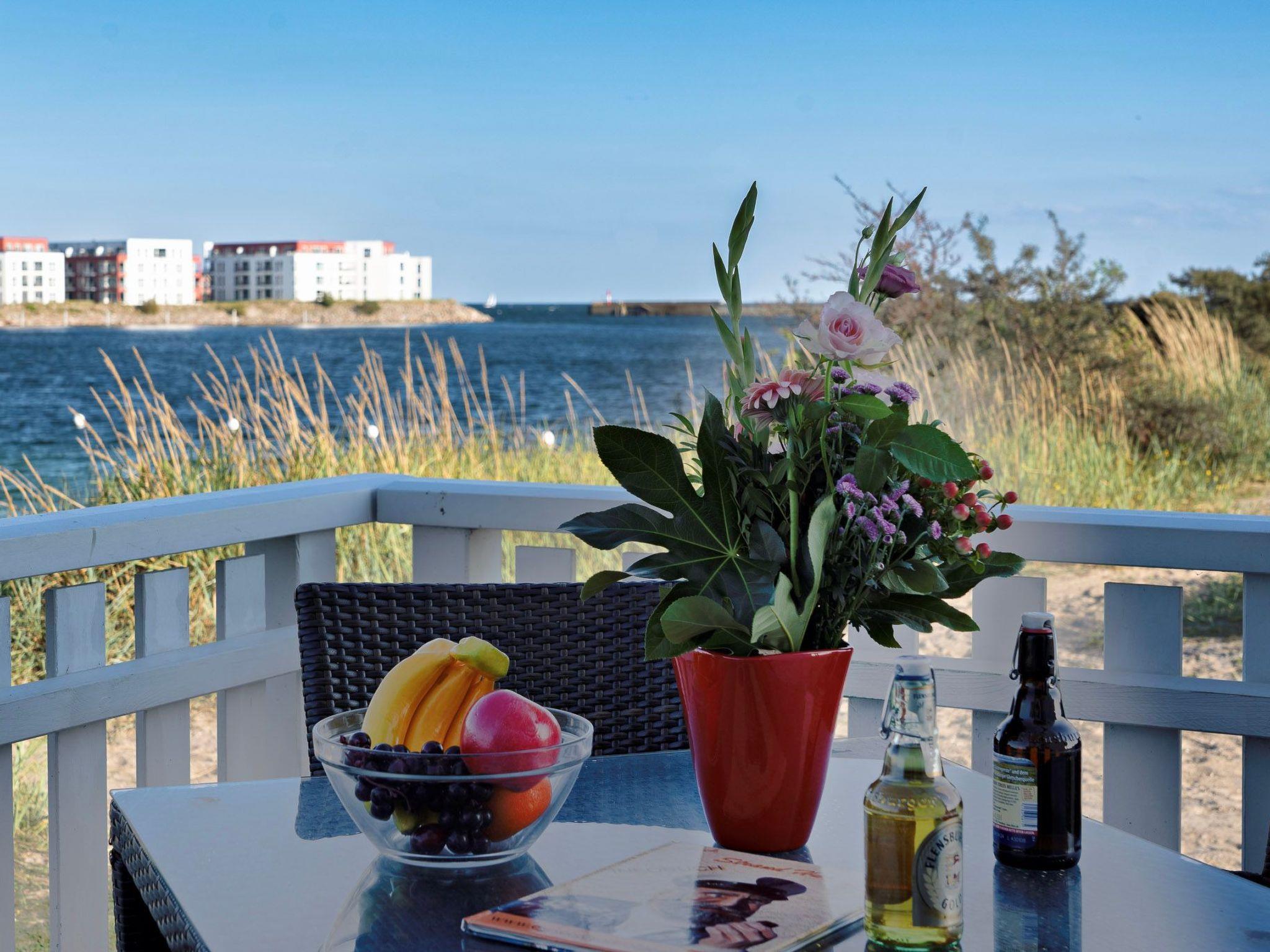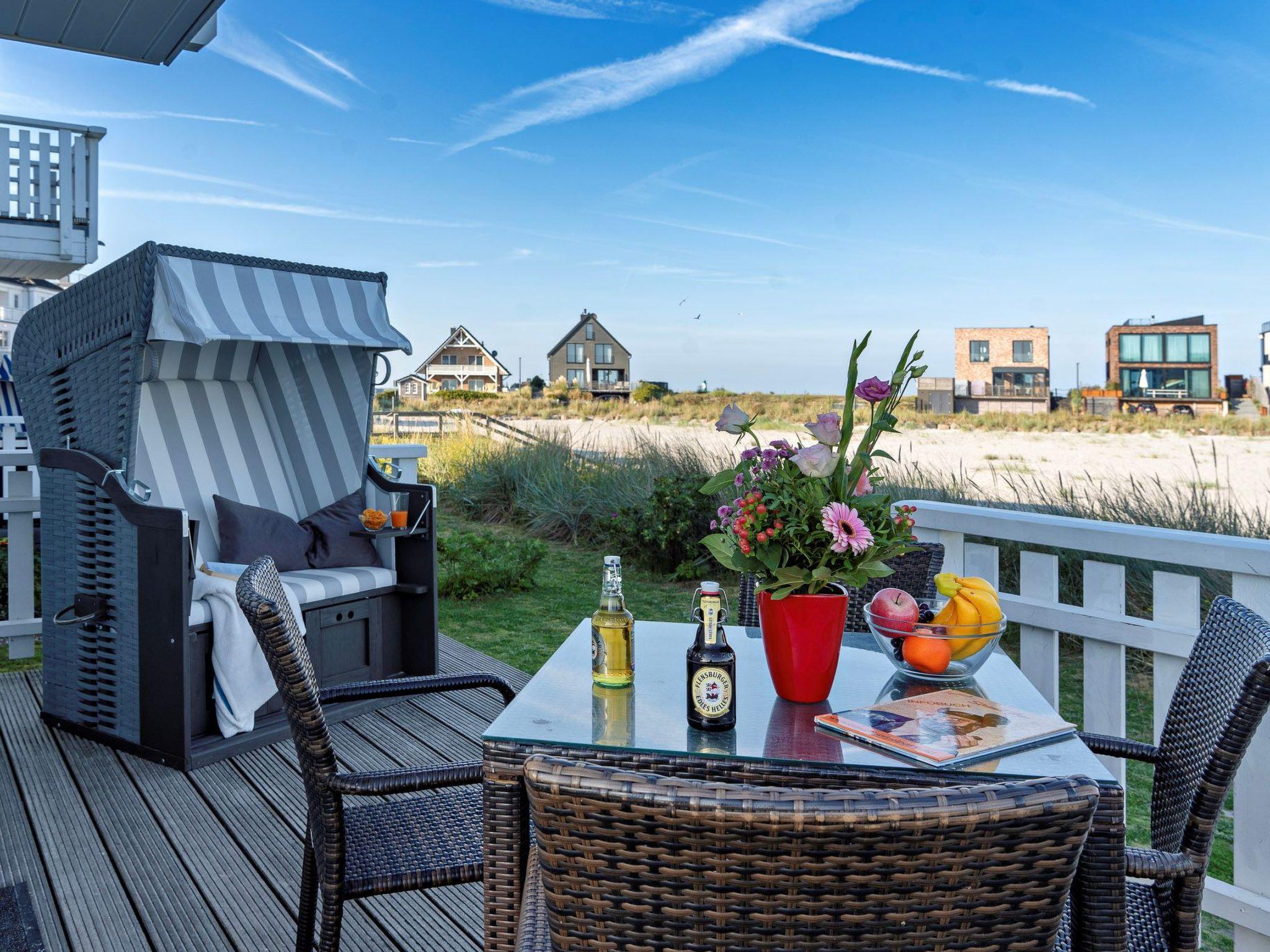 Other special features such as the cosy wooden terrace on the ground floor with a little section of garden, a balcony by the bedroom and especially the big roof terrace with a fantastic panoramic view from the Kiel fjord tot he Danish island of Ærø ensure a very special Baltic Sea holiday. With its location and orientation, this house may well be the best of all these white beach villas.