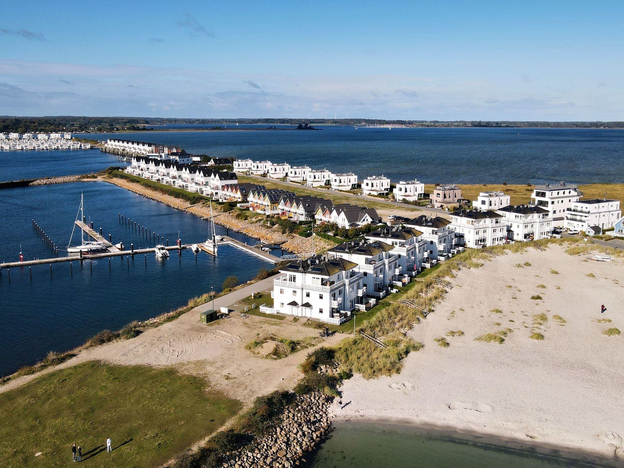 Owing to facing south-east, the house enjoys a really incredible view of the beach, the entrance to the harbour, the entering and passing sailing boats and the Baltic Sea. There are some boat piers with sailing boats just 20 steps away, with others following on. 150 metres away to he north there is an idyllic nature reserve, the so-called “Nordhaken”, but which is not open for access. Port Olpenitz is set to become northern Europe’s largest maritime holiday resort and is still being developed. The whole holiday houe area is still being built, so not all access roads are yeet complete and there may still be building work, even if not in the immediate vicinity.