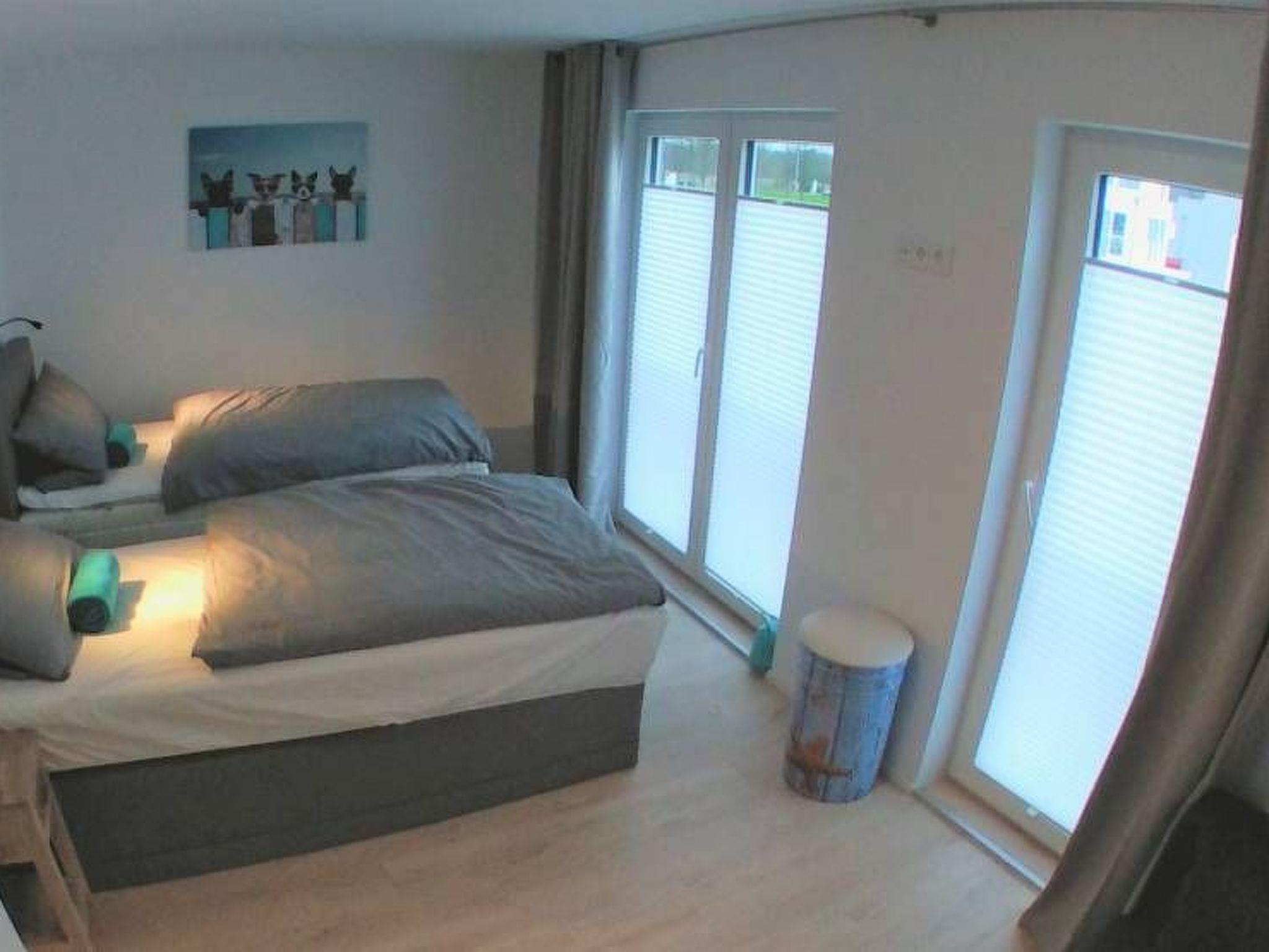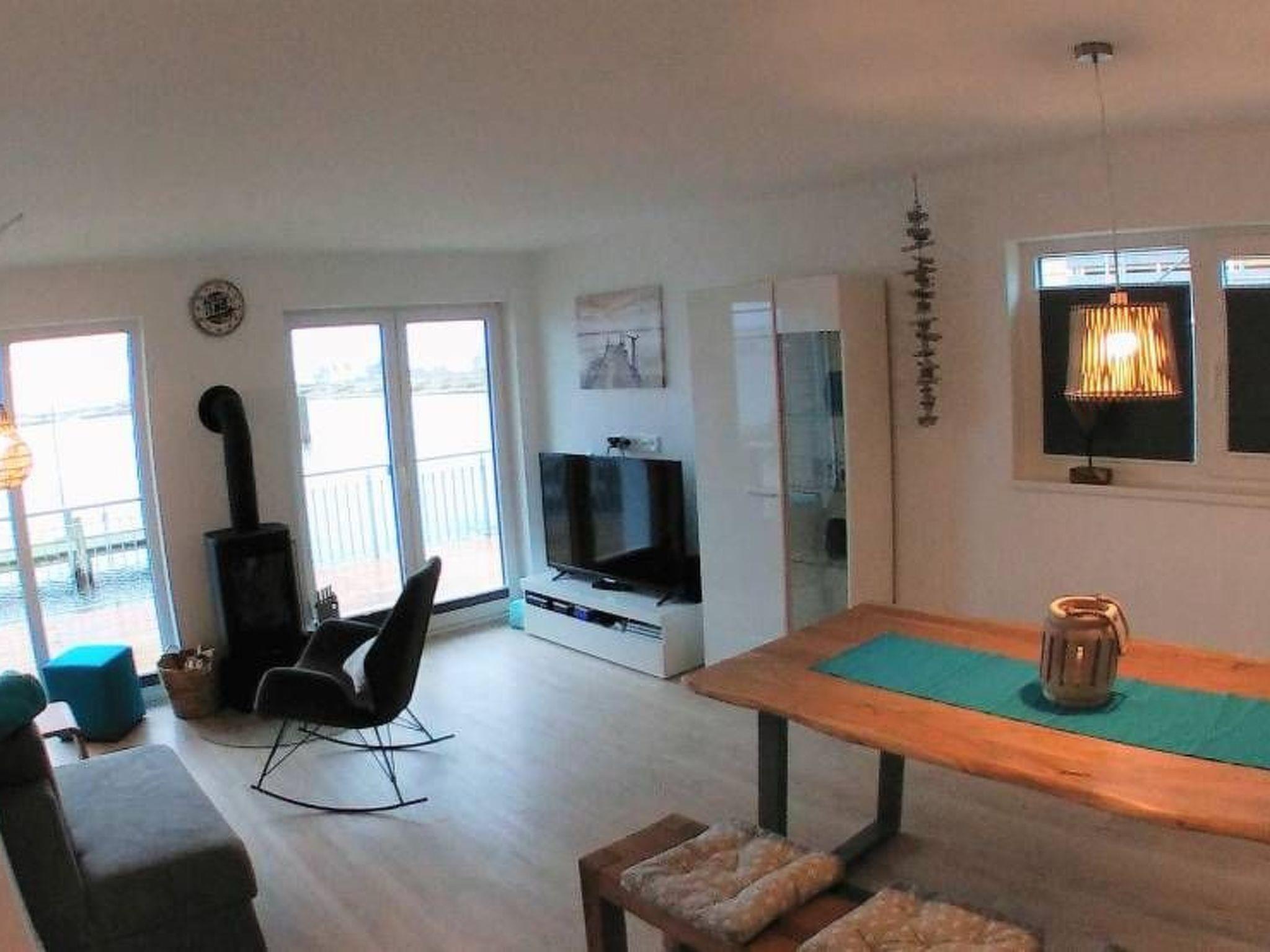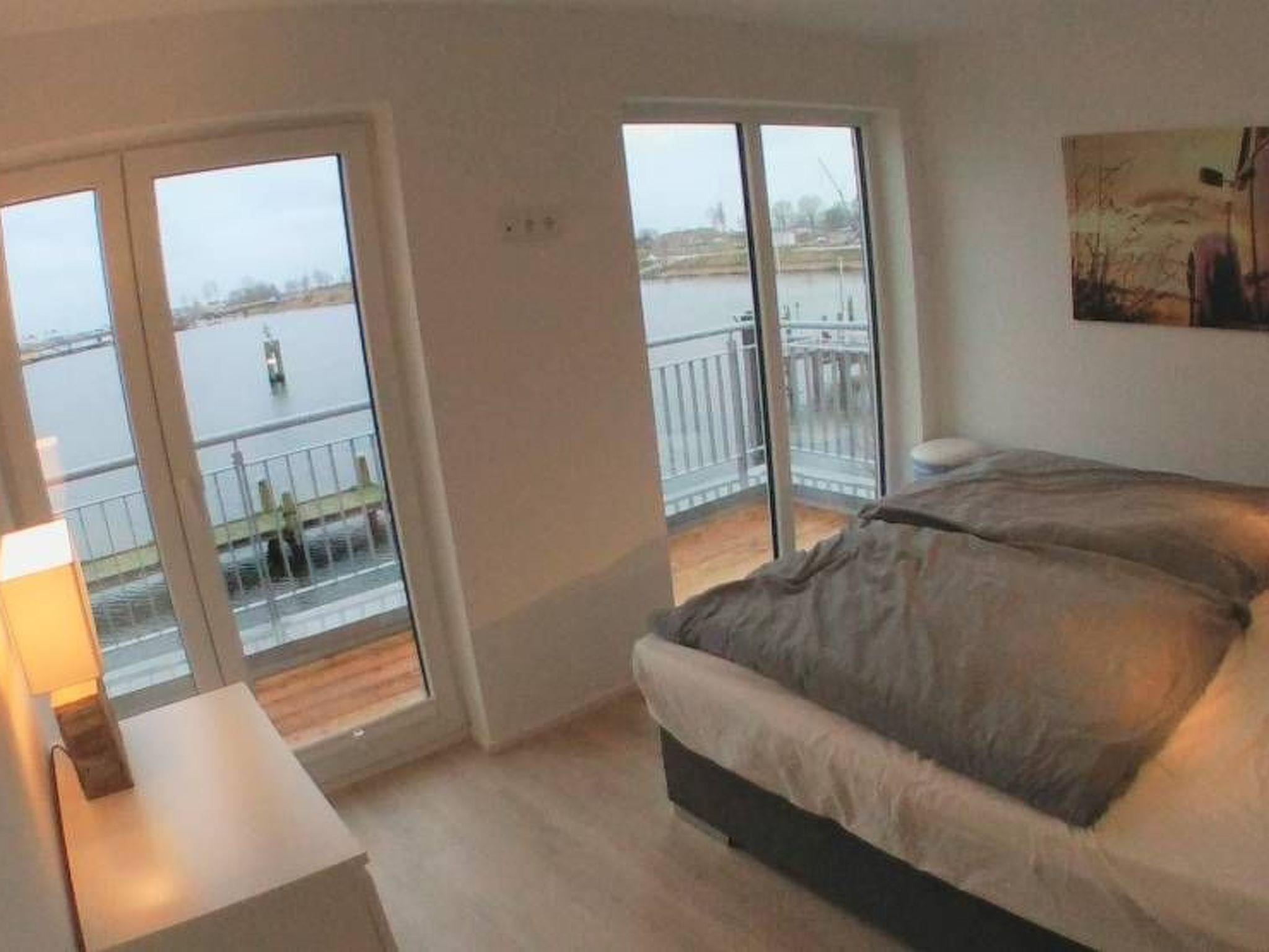 The holiday home, newly built by the end of 2017 and furnished to a high standard, offers a spacious and light-flooded living/dining area and a first-class equipped kitchen with access to the ground floor terrace and garden. A further balcony and a large roof terrace with all-round water views (west and east-facing and partly also north and south-facing) with sun loungers and a cosy lounge. You also have your own wellness area with shower, sauna and whirlpool (and WC) and another additional bathroom (also with WC and shower). Enjoy your morning coffee on the ground floor terrace and then sunbathe on the upper floor terrace and take your afternoon coffee on the roof terrace and enjoy the sunset. The choice is yours. The harbour promenade is only about 200m away (Edeka & Café opened in May 2018), the harbour is only 300m away (the beautiful 5km long sandy beach is only 1400m away.
