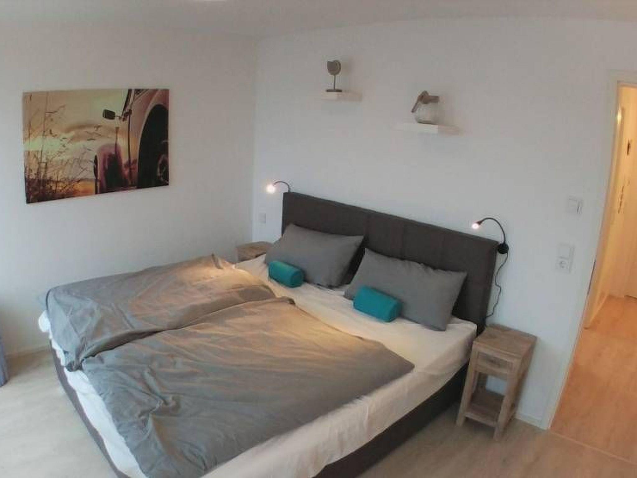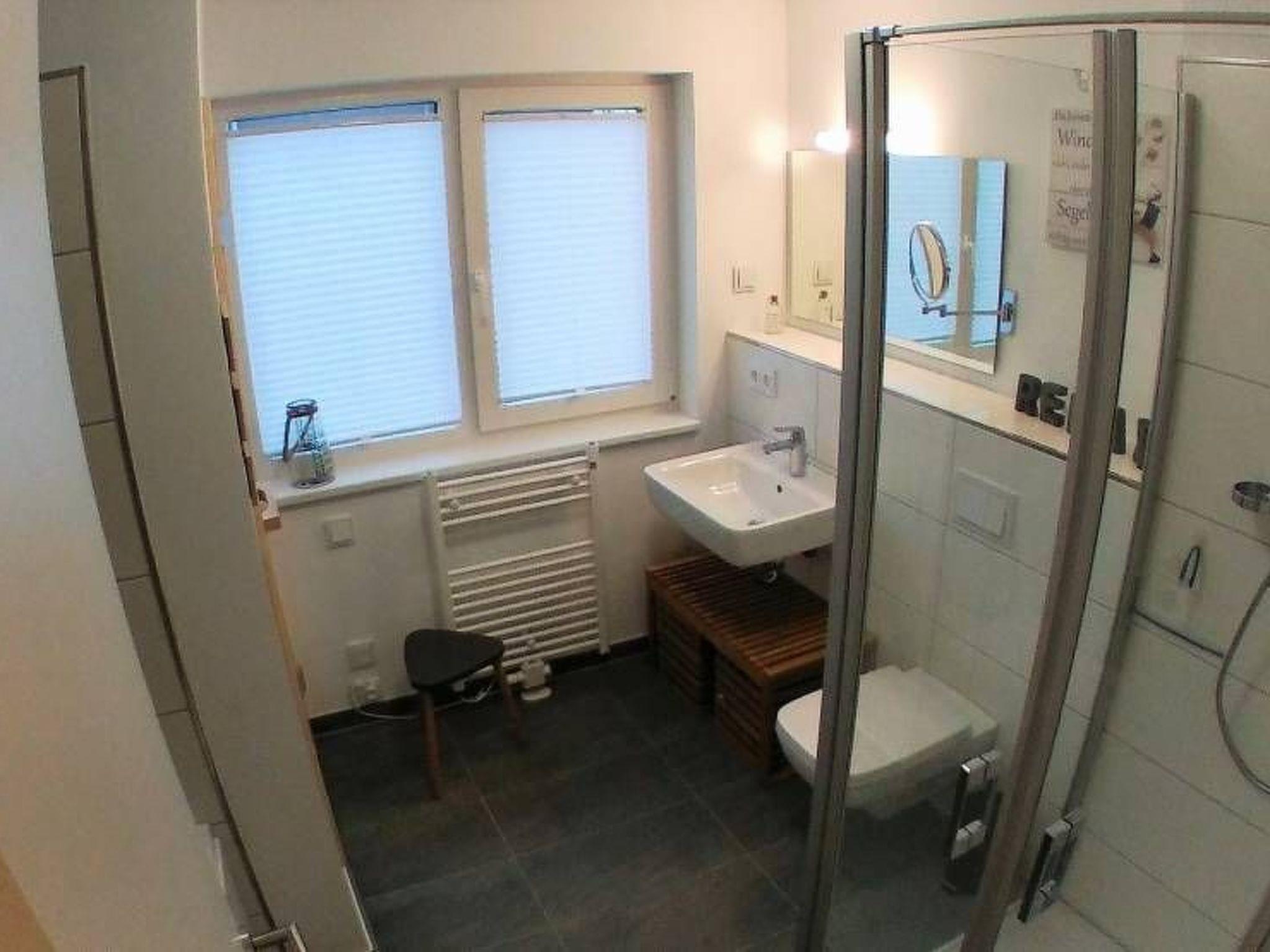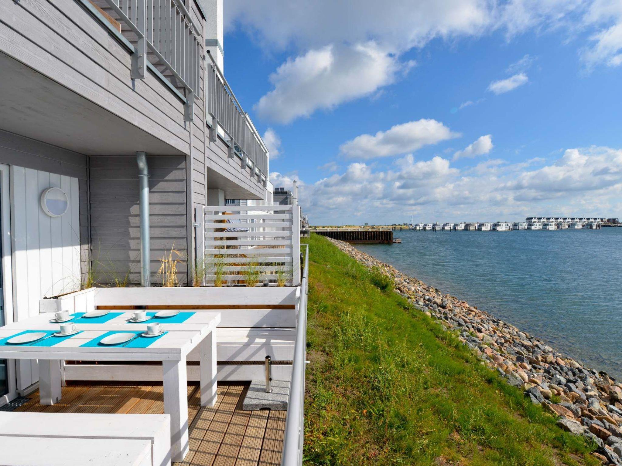 The holiday home, newly built by the end of 2017 and furnished to a high standard, offers a spacious and light-flooded living/dining area and a first-class equipped kitchen with access to the ground floor terrace and garden. A further balcony and a large roof terrace with all-round water views (west and east-facing and partly also north and south-facing) with sun loungers and a cosy lounge. You also have your own wellness area with shower, sauna and whirlpool (and WC) and another additional bathroom (also with WC and shower). Enjoy your morning coffee on the ground floor terrace and then sunbathe on the upper floor terrace and take your afternoon coffee on the roof terrace and enjoy the sunset. The choice is yours. The harbour promenade is only about 200m away (Edeka & Café opened in May 2018), the harbour is only 300m away (the beautiful 5km long sandy beach is only 1400m away.