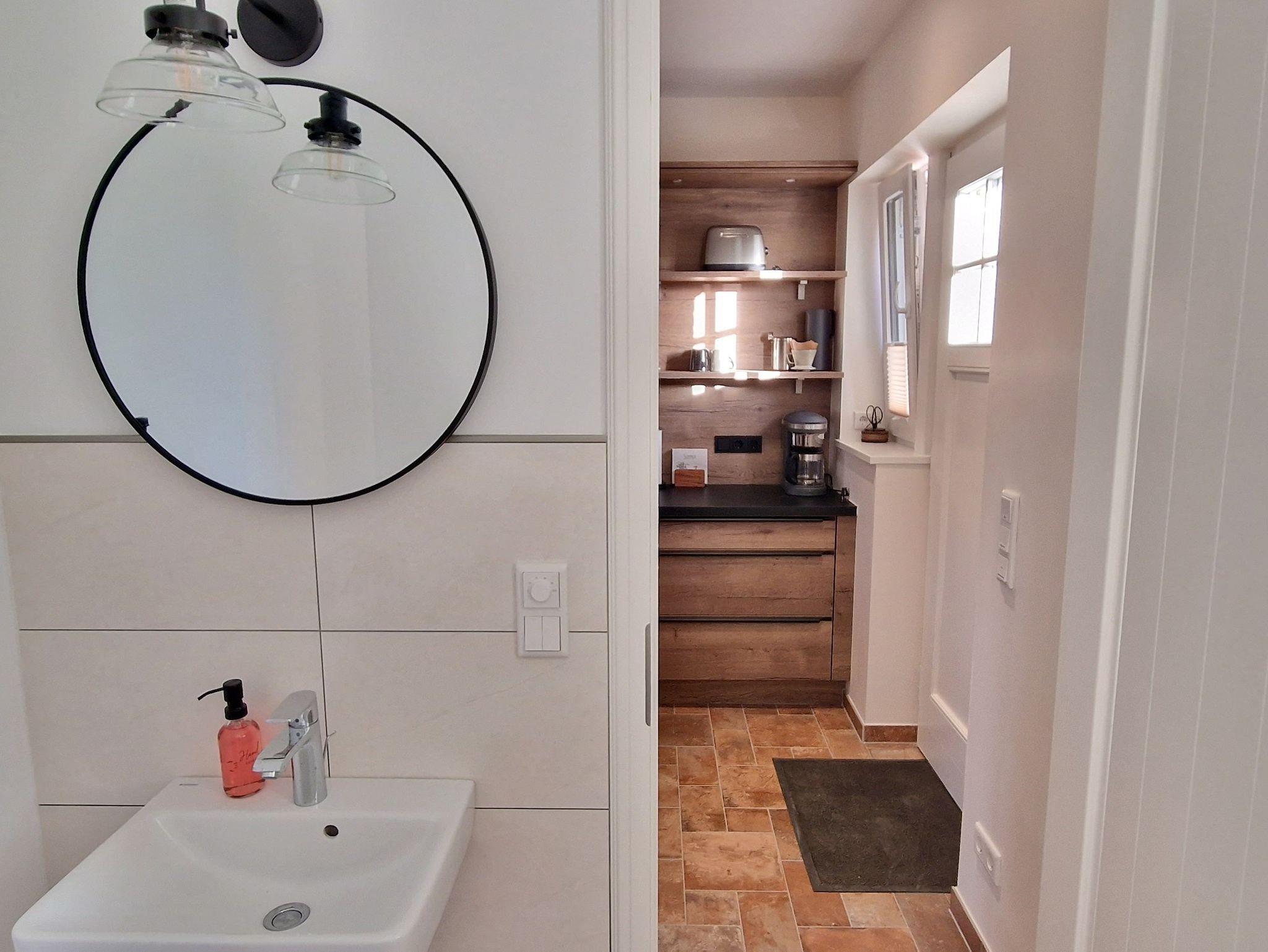 Die Ferienwohnung Lütte Stuuv in der ehemaligen Scheune des Hofes ist in einem charmanten Mix aus Alt und Modern gestaltet und hochwertig ausgestattet. Eine Fußbodenheizung sorgt für angenehme Wärme.