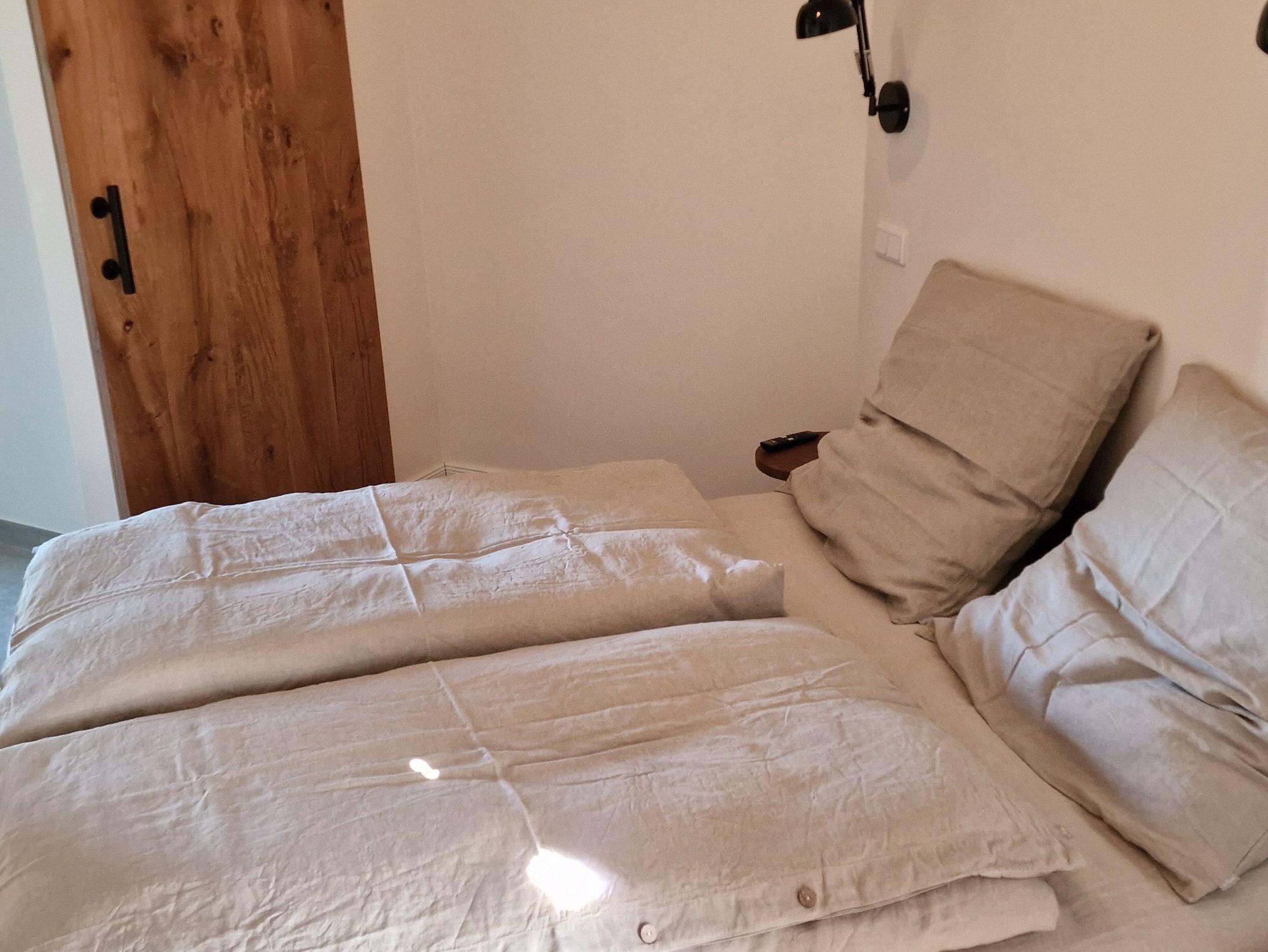 Kleiderschrank und TV; Verdunklungsplissees; Bettwäsche ist inklusive