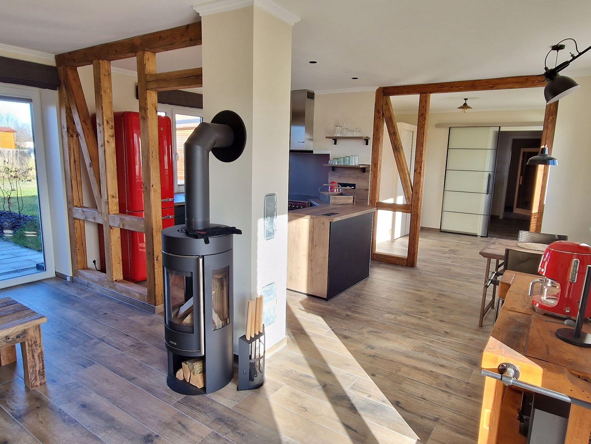 - offener Wohn- und Essbereich mit Kaminofen und TV