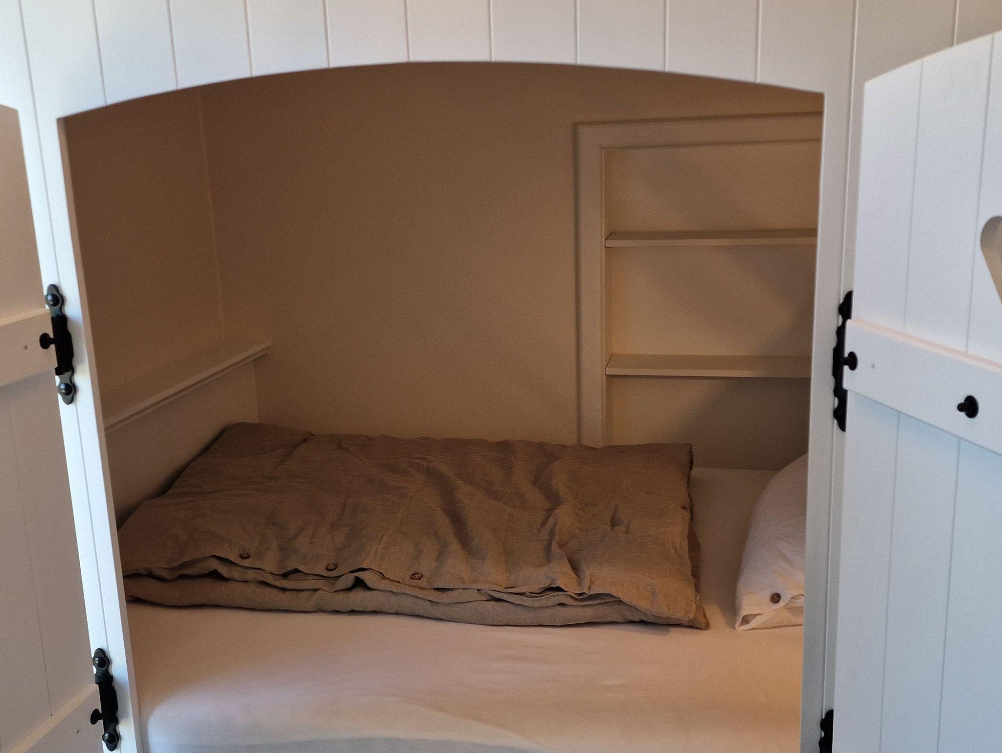 - Schlafzimmer mit Alkovenbett (140x200); Verdunklungsplissees; Bettwäsche ist inklusive
