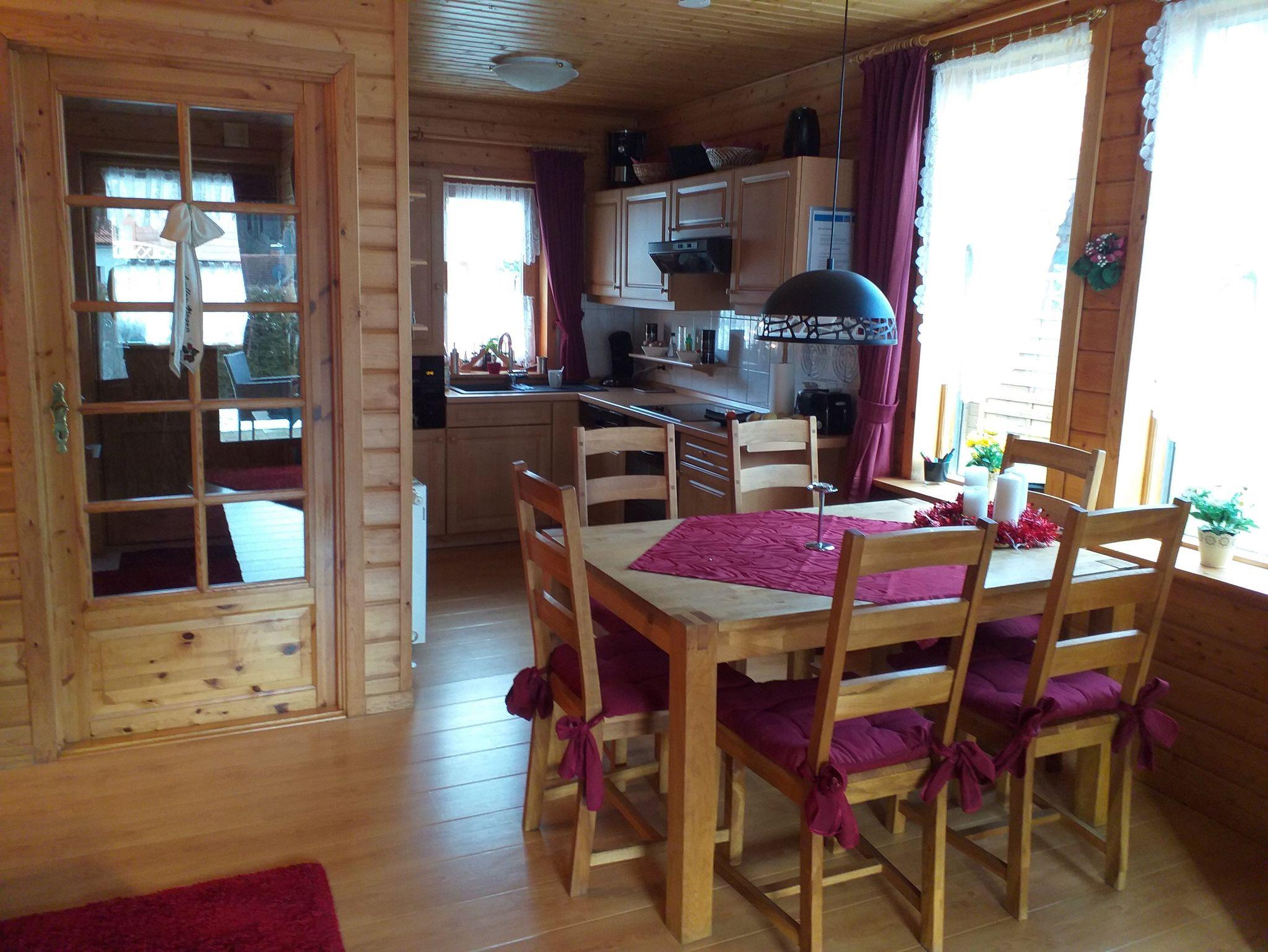 Das 3-Zimmer-Ferienhaus mit ca. 66 m² Wohnfläche bietet eine individuelle, gehobene Ausstattung und Platz für bis zu sechs Personen. Im Erdgeschoss befinden sich ein geräumiger Wohnbereich mit gemütlicher Sitzecke (Lederdoppelbettcouch), separatem Essplatz und offen gestalteter Küche. Zur Ausstattung gehören SAT-LCD-TV mit Sky und Disney-Channel, DVD-Player, CD-/Stereo-Anlage sowie eine Auswahl an DVDs, Musik-CDs, Büchern und Gesellschaftsspielen. Kostenloses WLAN ist vorhanden. Die moderne Einbauküche ist mit Geschirrspüler, Ceran-Kochfeld, Mikrowelle mit Grillfunktion und Senseo-Kaffeemaschine ausgestattet. Zusätzlich gibt es ein Gäste-WC und einen Abstellraum.