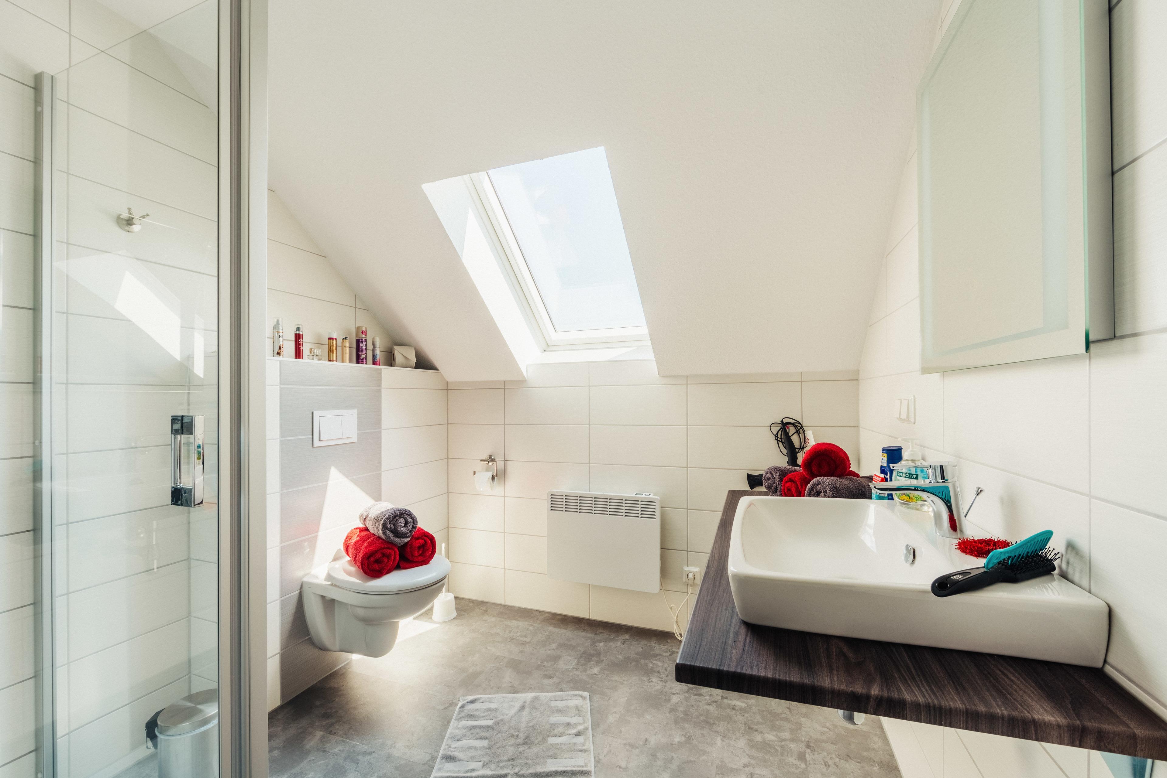 1 Duschbad mit ebenerdiger Dusche und Föhn