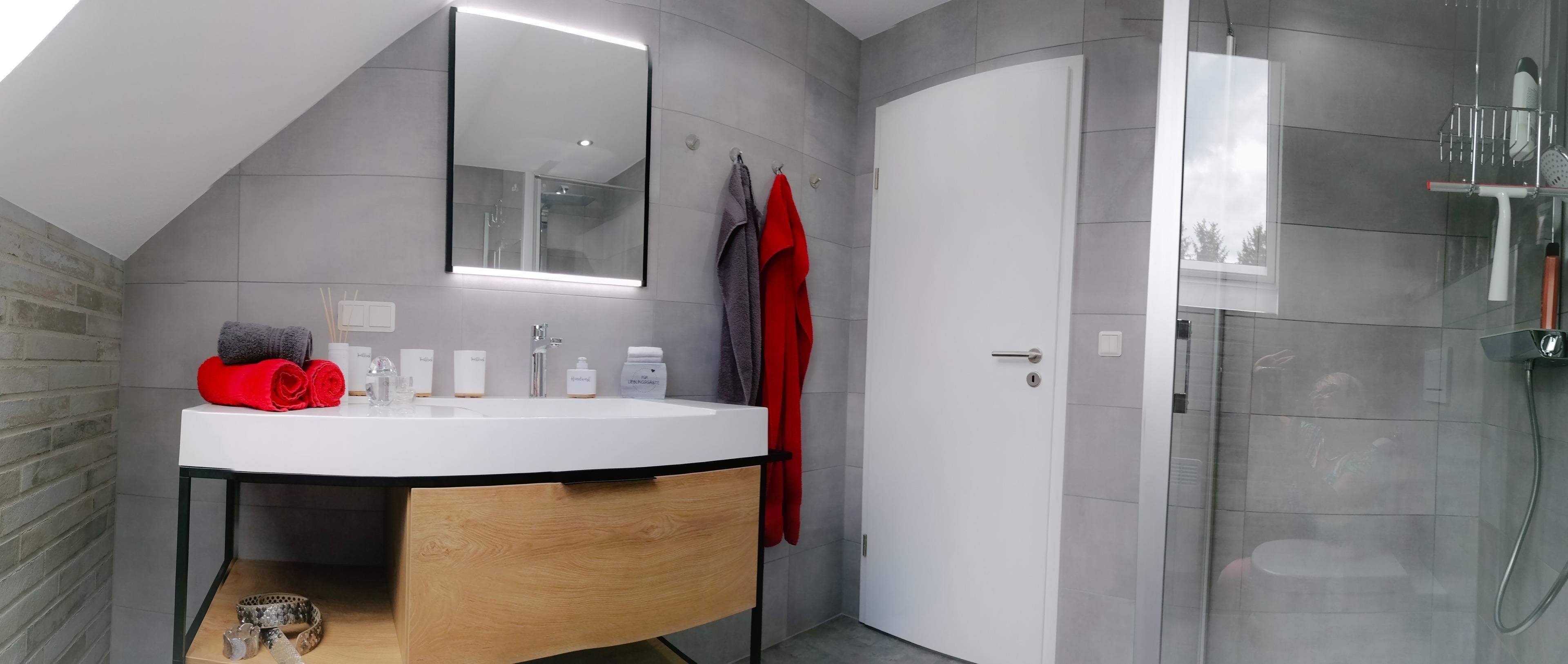1 Duschbad mit ebenerdiger Regendusche und Föhn