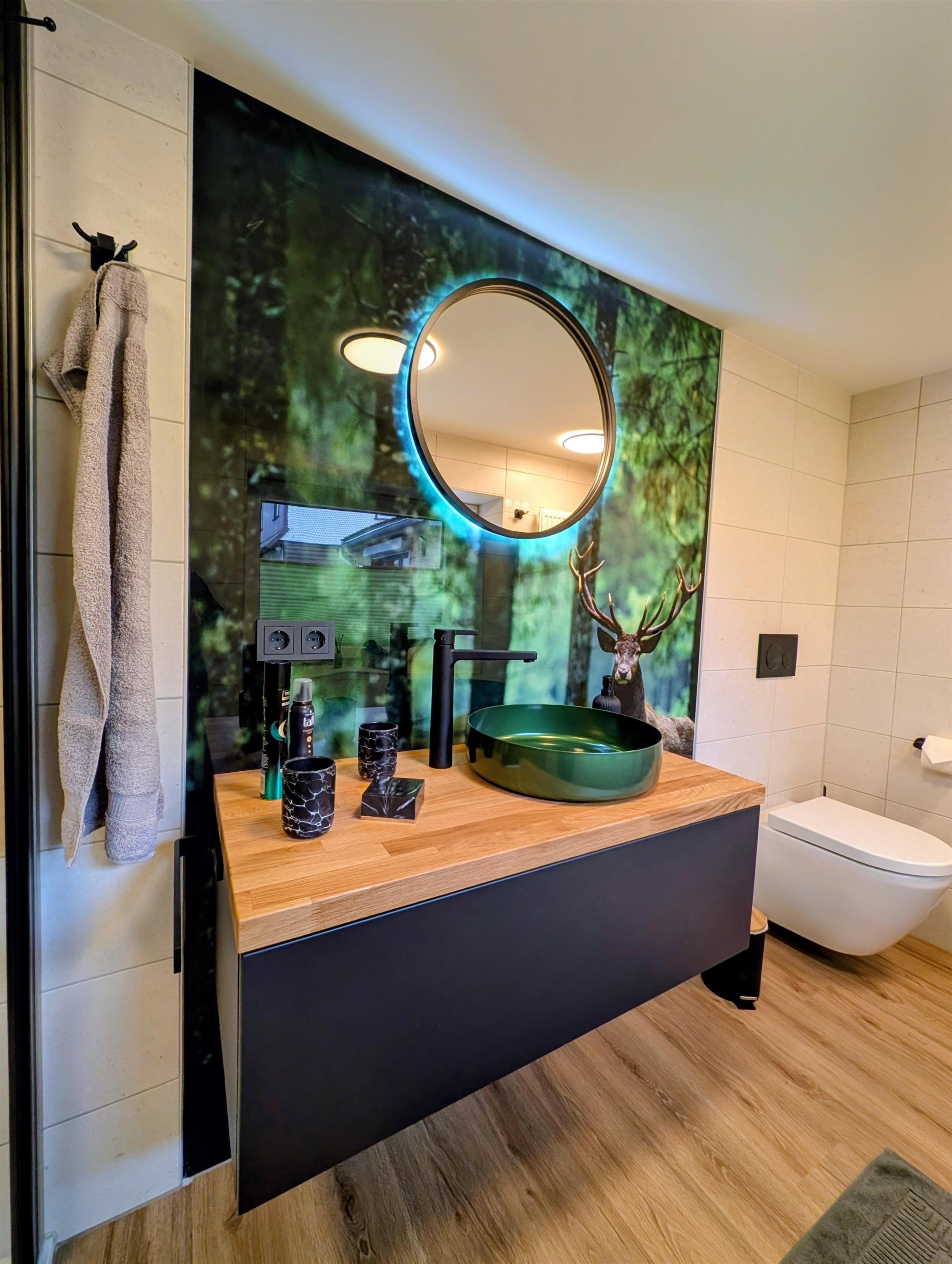 Auf etwa 75 m² bietet sie Platz für bis zu 5 Personen und lädt zum Entspannen im " forest life" ein.