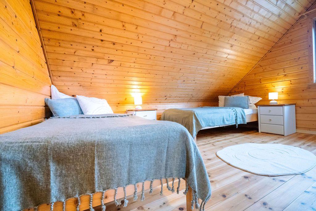 Das Ferienhaus verfu¨gt u¨ber zwei gemu¨tliche Schlafzimmer fu¨r bis zu vier Personen. Zusätzlich bietet die ausziehbare Couch im Wohnbereich zwei weitere Schlafmöglichkeiten. Sie bildet zugleich das Herzstu¨ck des offenen Wohnraums mit Annehmlichkeiten wie Ethanol-Kamin, TV, Bluetooth-Lautsprecher und großzu¨gigem Essbereich.