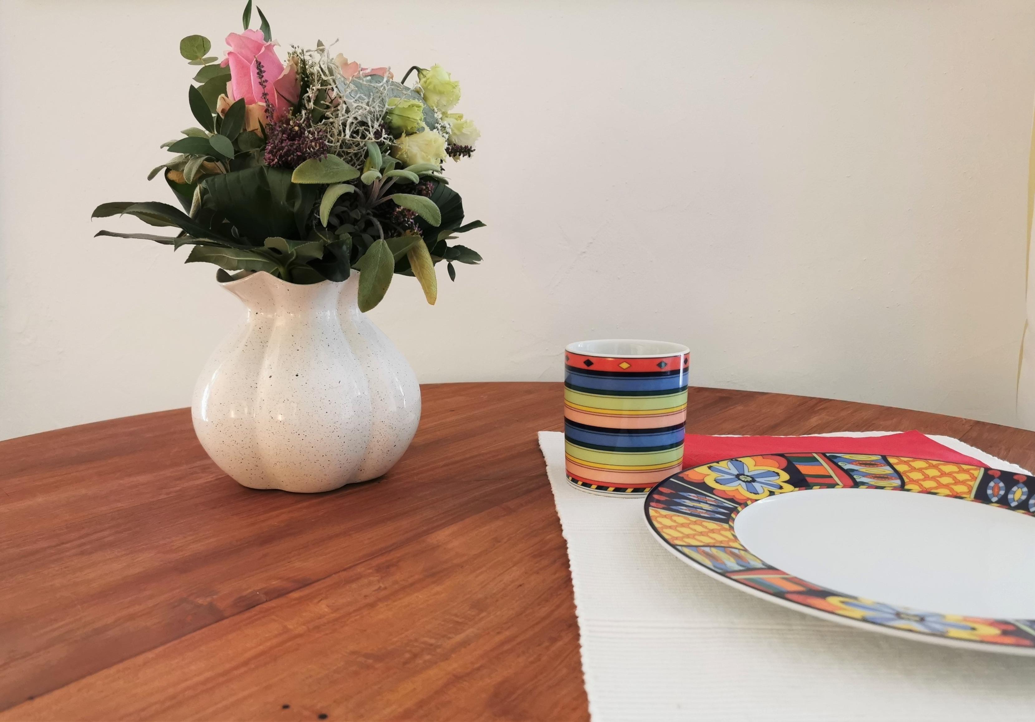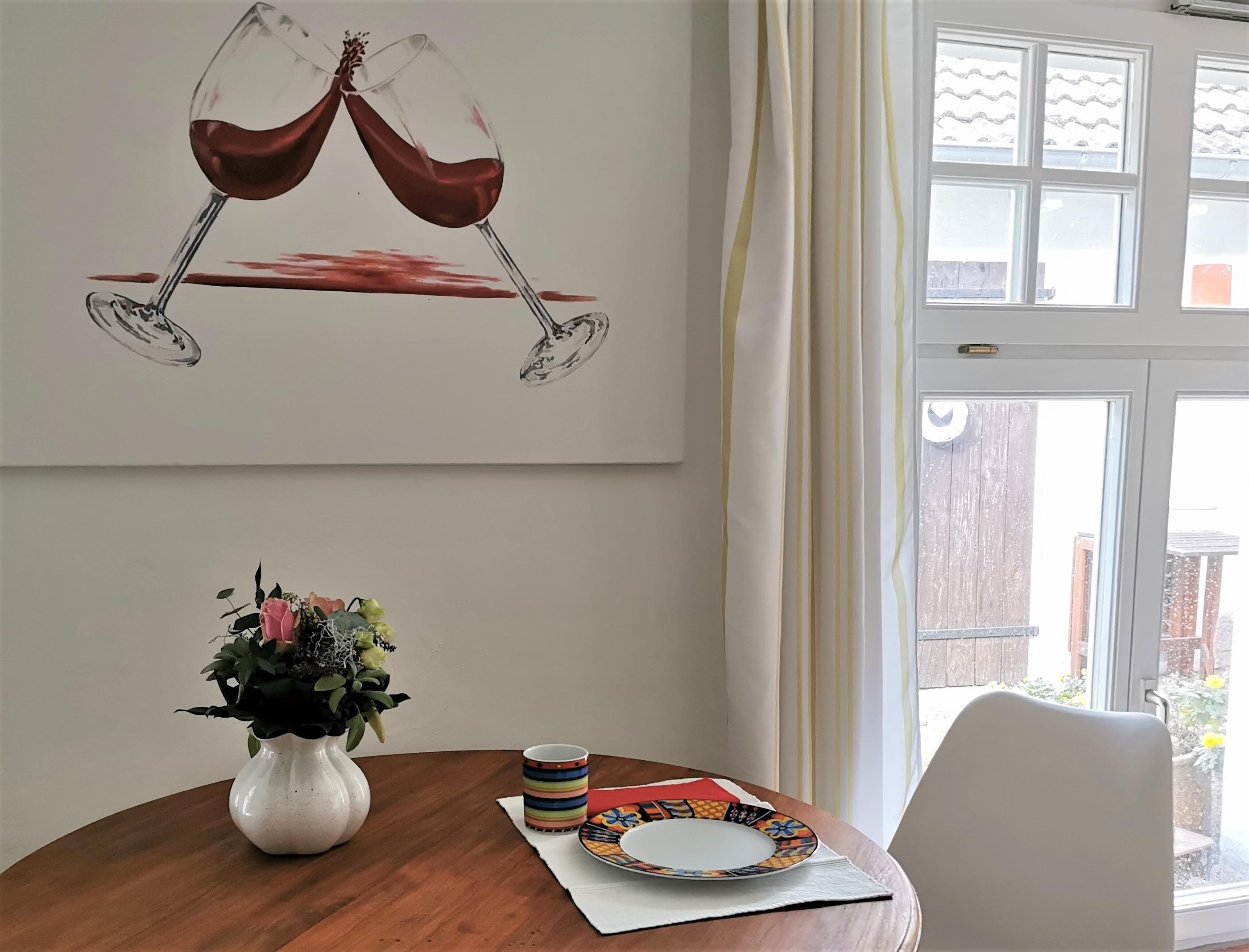 Vor der Wohneinheit befindet sich eine Terrasse mit Tisch und Stühlen, die im Sommer zum Frühstücken einlädt.
