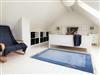 Über eine Treppe gelangt man in das Obergeschoss. Dort befindet sich der Schlafbereich mit einem Doppelbett und einem Kleiderschrank.