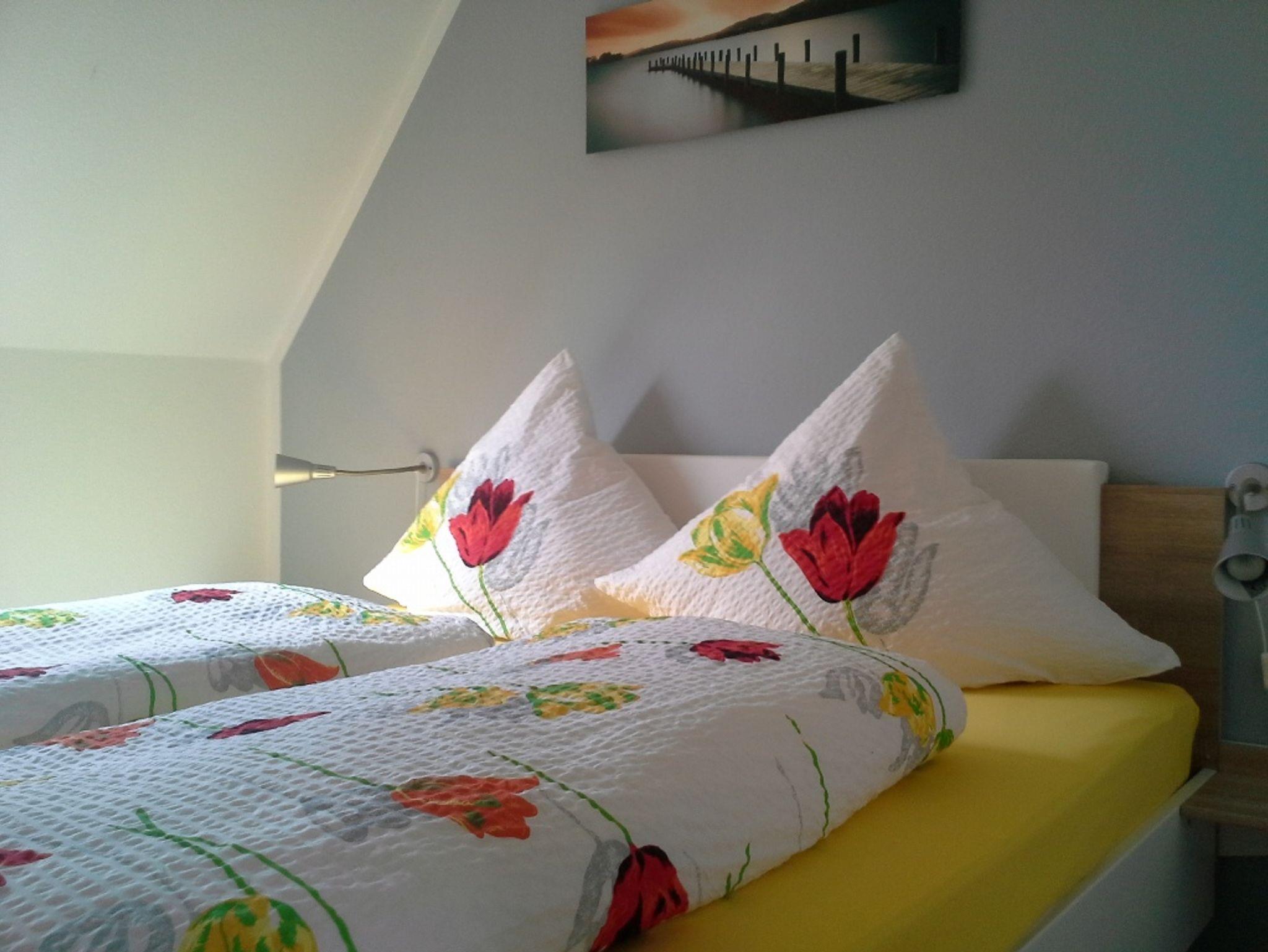 Die moderne Ferienwohnung 2 ist 82 qm groß und für 4 Personen ausgelegt. Die Ferienwohnung verfügt über Küche mit Wasserkocher, Mikrowelle, Kaffeemaschine, Teekocher, Toaster, Kühl-Gefrier-Kombination, Spülmaschine und Esstisch. Der Wohnbereich mit Couch und SAT-TV lädt zum Verweilen ein. Zum Schlafen gibt es zwei Schlafzimmer mit jeweils einem Doppelbett. Das Badezimmer ist mit Dusche und WC ausgestattet. Außerdem gibt es ein separates WC neben dem Eingang. Auf dem schönen Balkon können Sie die Sonne genießen. Bettwäsche und Handtücher sind inklusive und auch Waschmaschine und Trockner sind vorhanden. Haustiere dürfen allerdings nicht mitgebracht werden.