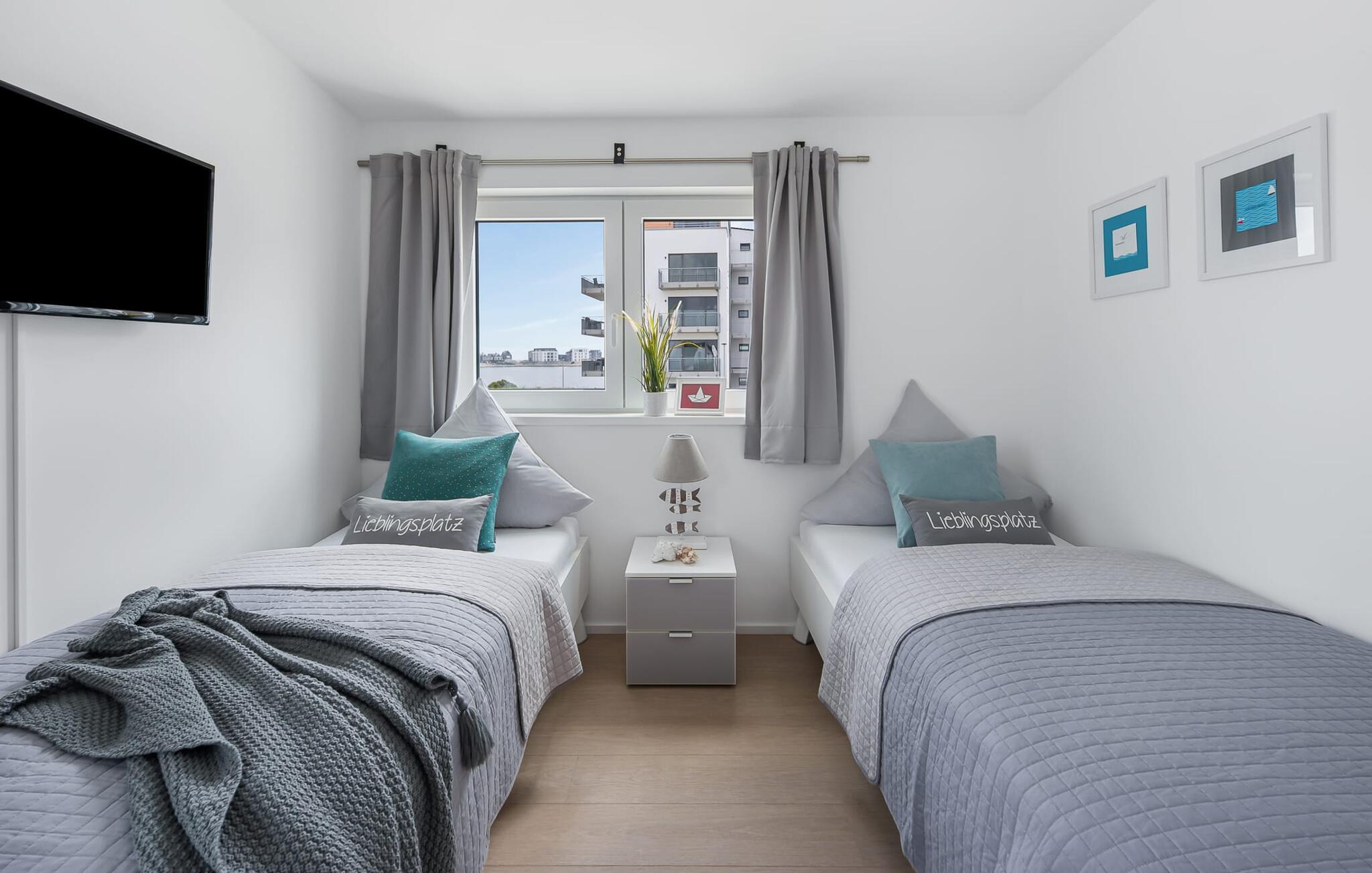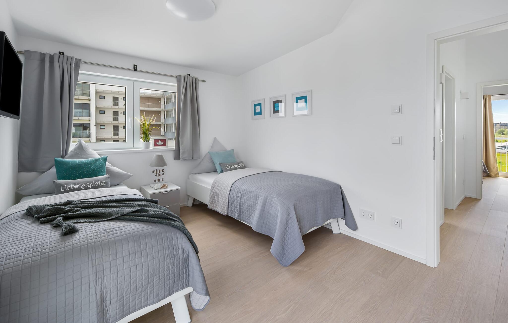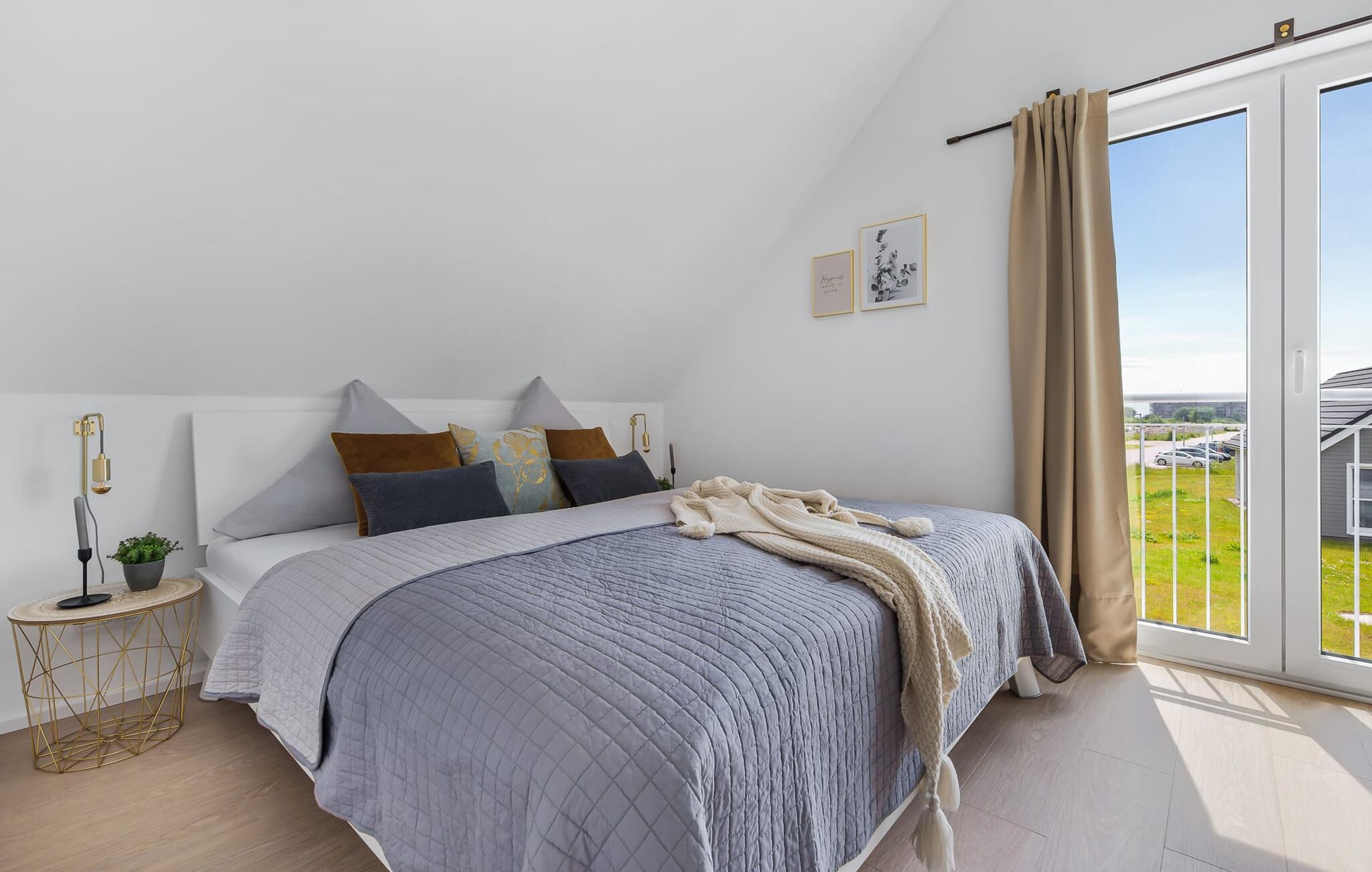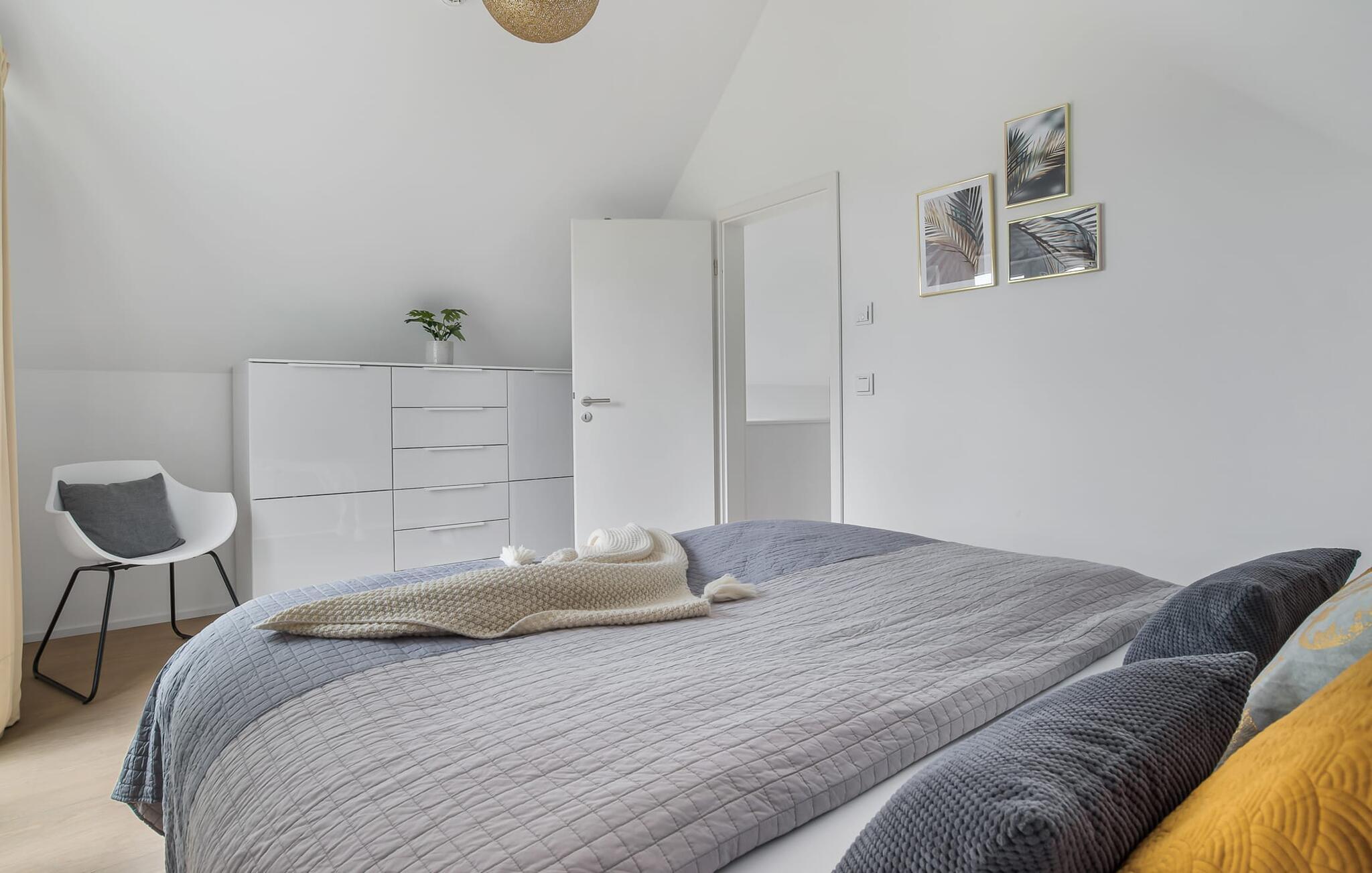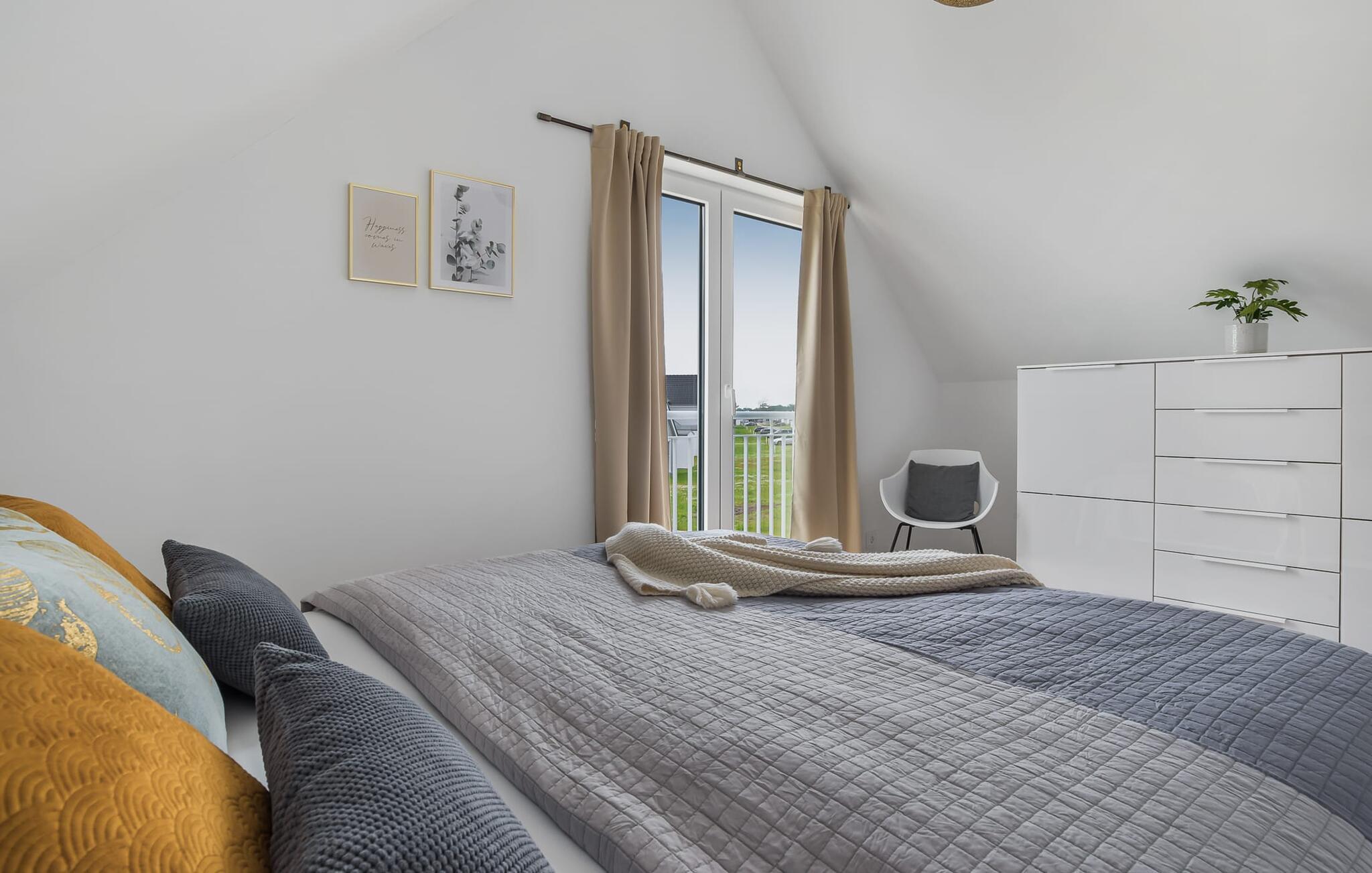 Til afslappende nætter er der et soveværelse med dobbeltseng og et andet soveværelse med to enkeltsenge samt et valgfrit fuldt udbygget soveområde i form af en chaiselong. En babyseng er også tilgængelig for yngre gæster. Hvis det er nødvendigt, finder du også en sengehest i huset, der fleksibelt kan fastgøres til enhver seng.