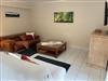 kombiniertes Wohn-/Esszimmer: ca. 31 m², Ledercouch, Tisch, Schlafsofa (160 x 200), TV, Esstisch für 6 Personen mit Zugang zur Terrasse