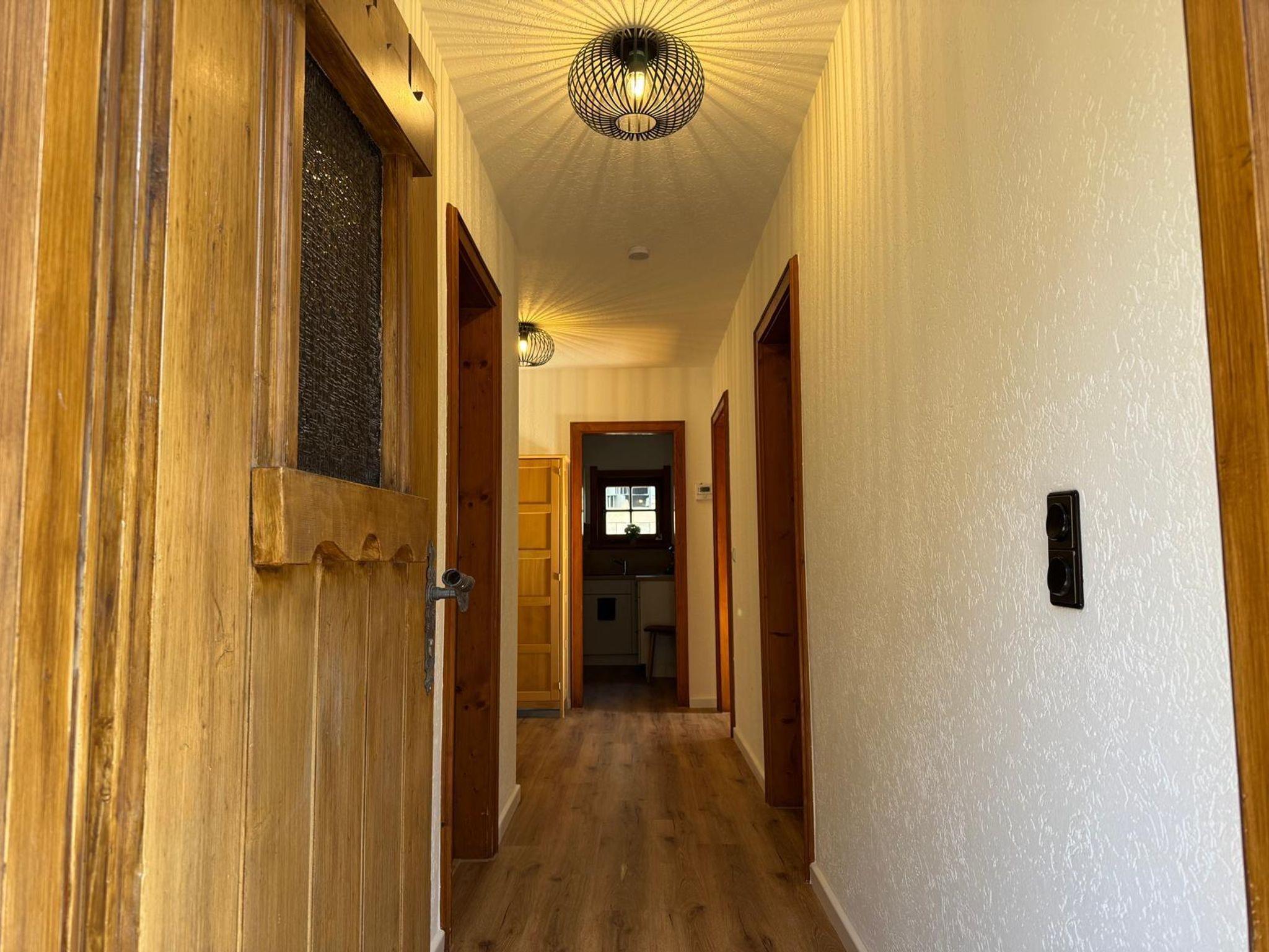 Das Chalet verfügt über zwei Schlafzimmer, einen großzügigen Wohnbereich mit Galerie und Essecke, ein Badezimmer mit Dusche und WC, eine komplett eingerichtete Küche und einen Balkon zur Südseite mit herrlicher Aussicht.