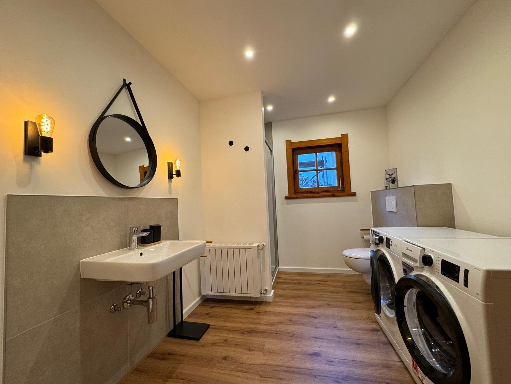 Waschmaschine, Trockner, Bügeleisen mit Bügelbrett erleichtern Ihren Aufenthalt, insbesondere bei längeren Ferien.