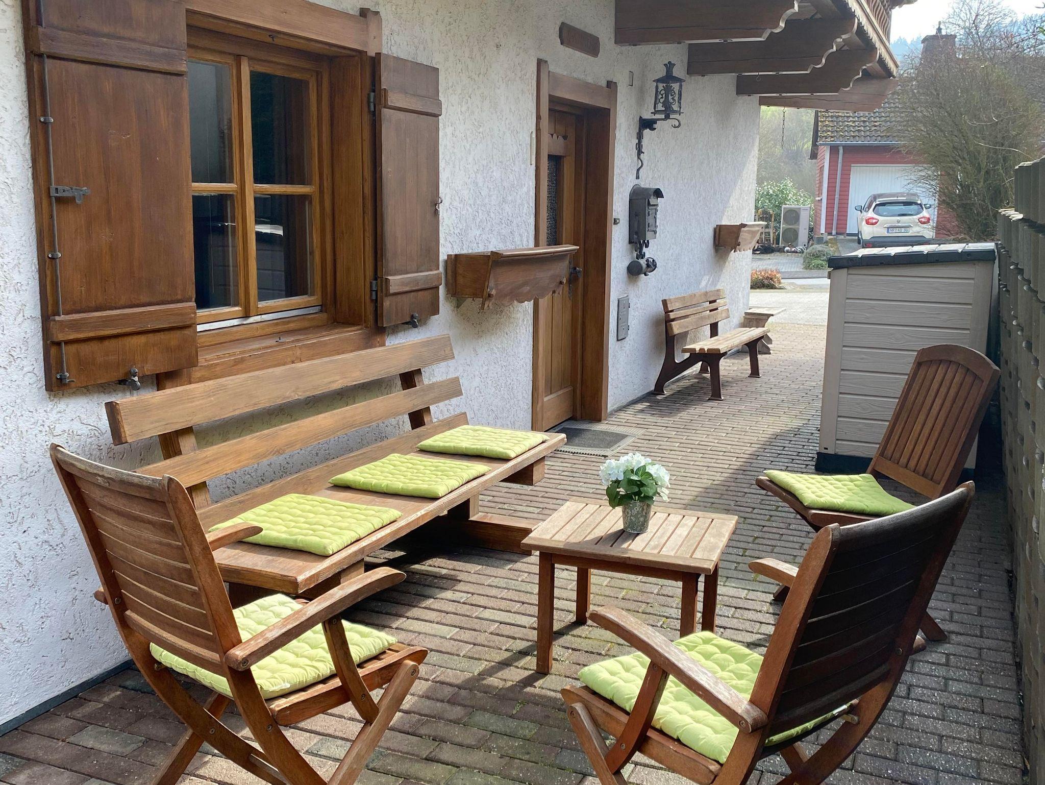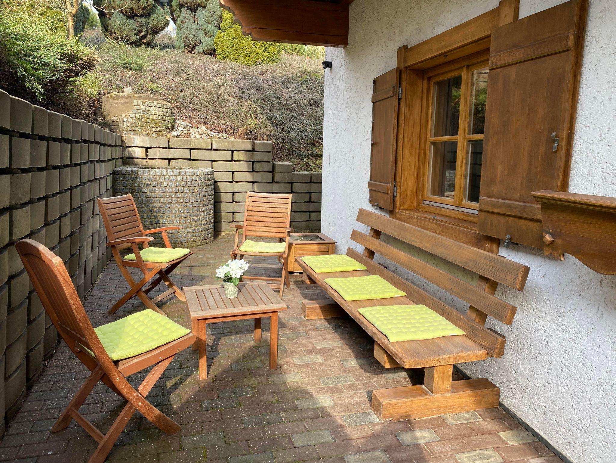 Sie dürfen gerne die vorhandenen Sitzgelegenheiten vor dem Haus nutzen um die angenehme Ruhe zu genießen und einfach aufzutanken.