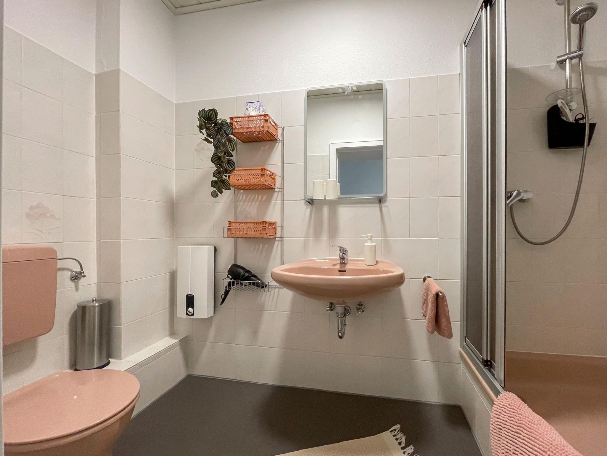 Das kleine, aber feine Badezimmer bietet alles, was Sie für einen angenehmen Aufenthalt brauchen. Dusche, WC, Handtücher, Seife und ein Fön sind selbstverständlich vorhanden.