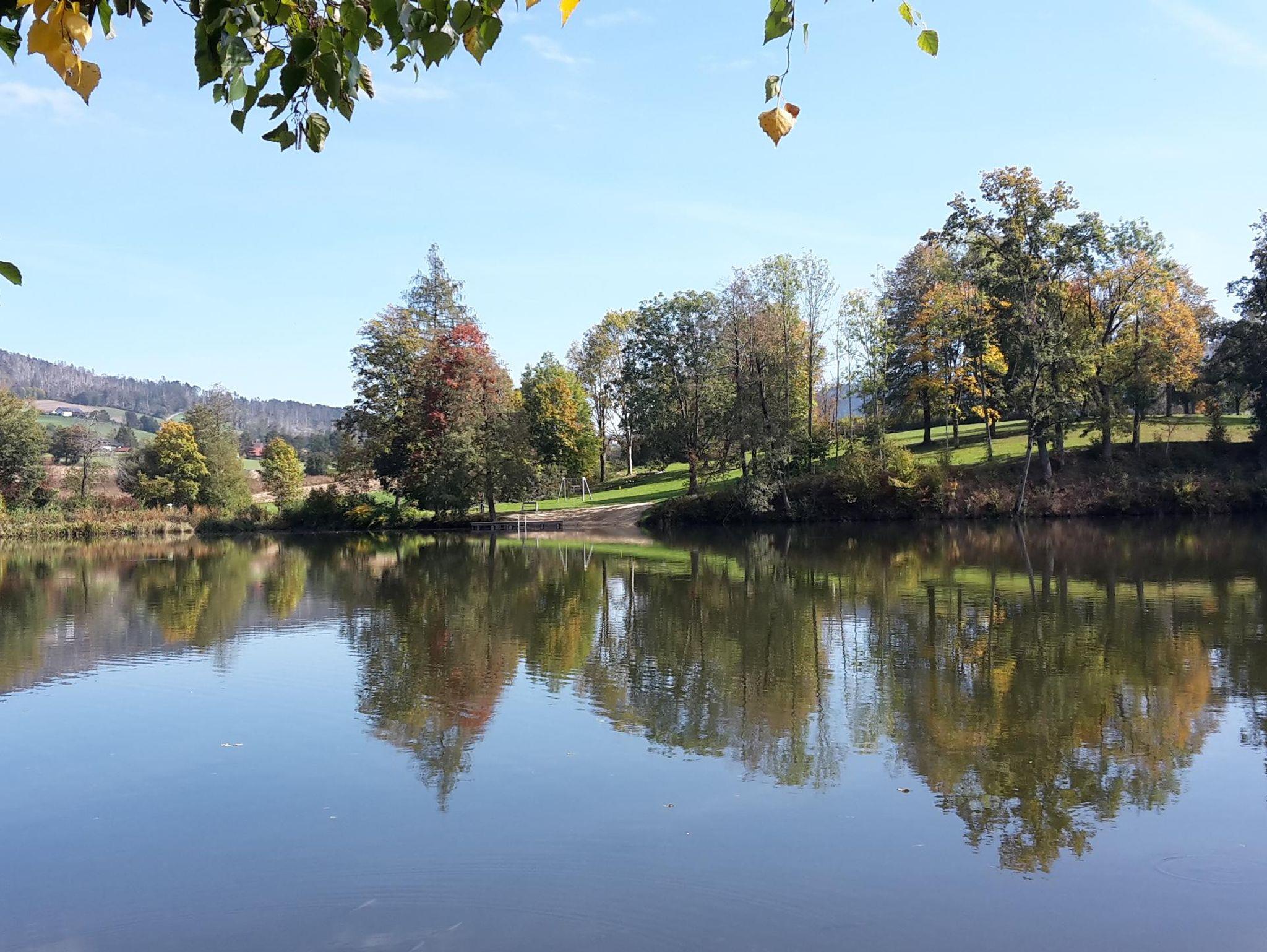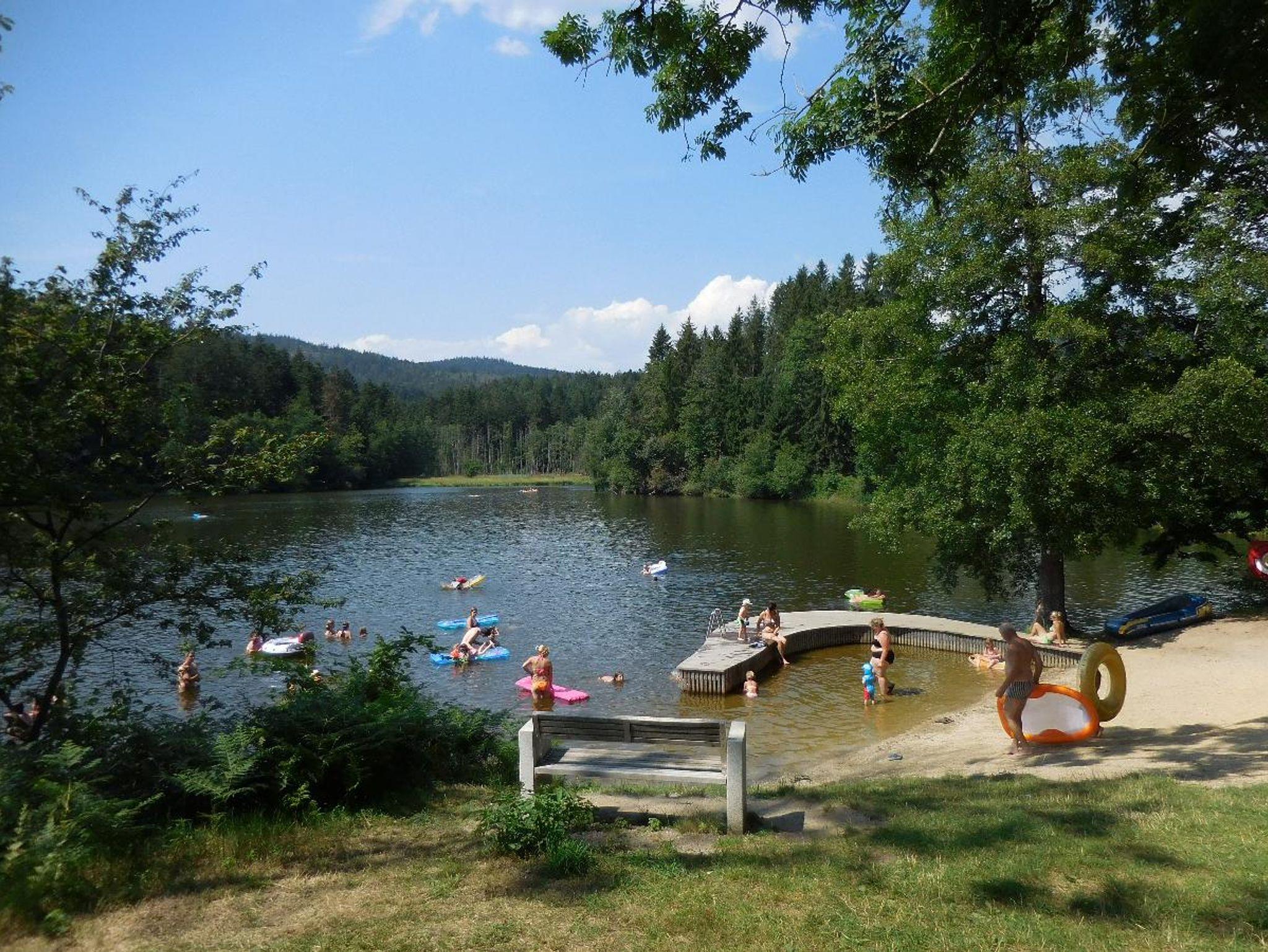 Freibad mit Liegewiese in der Anlage. Ein Badesee liegt in ca, 500 m Entfernung.