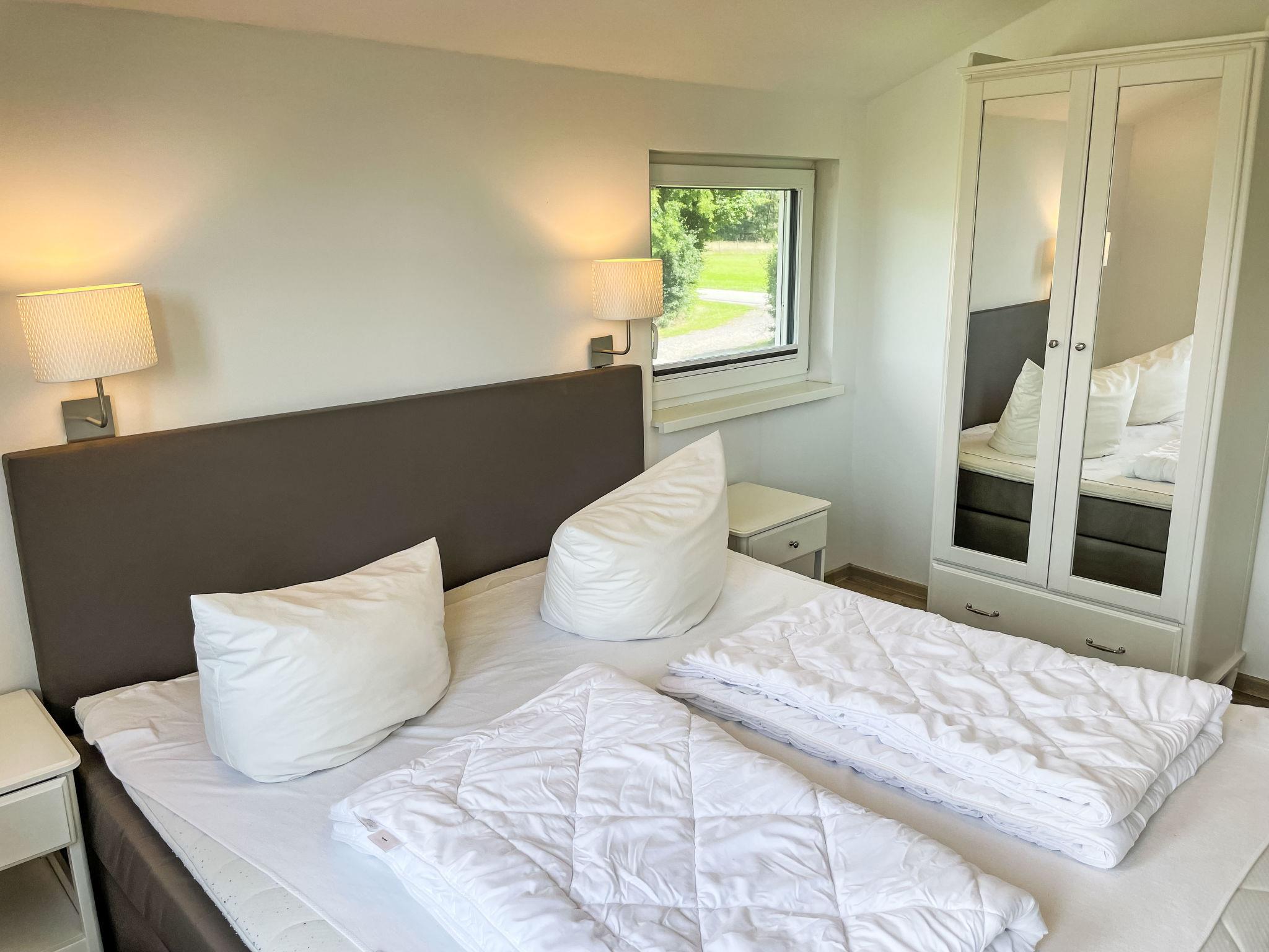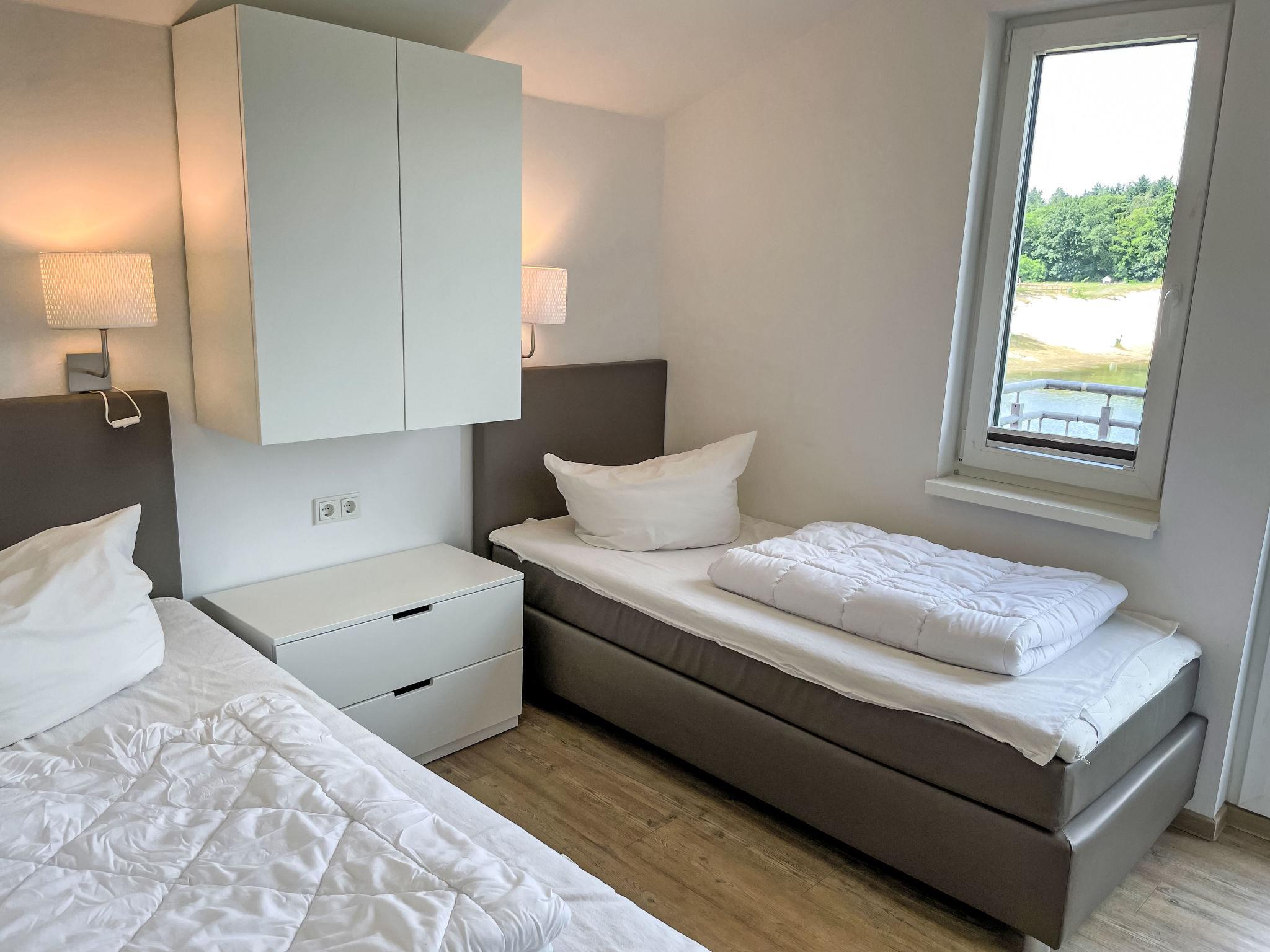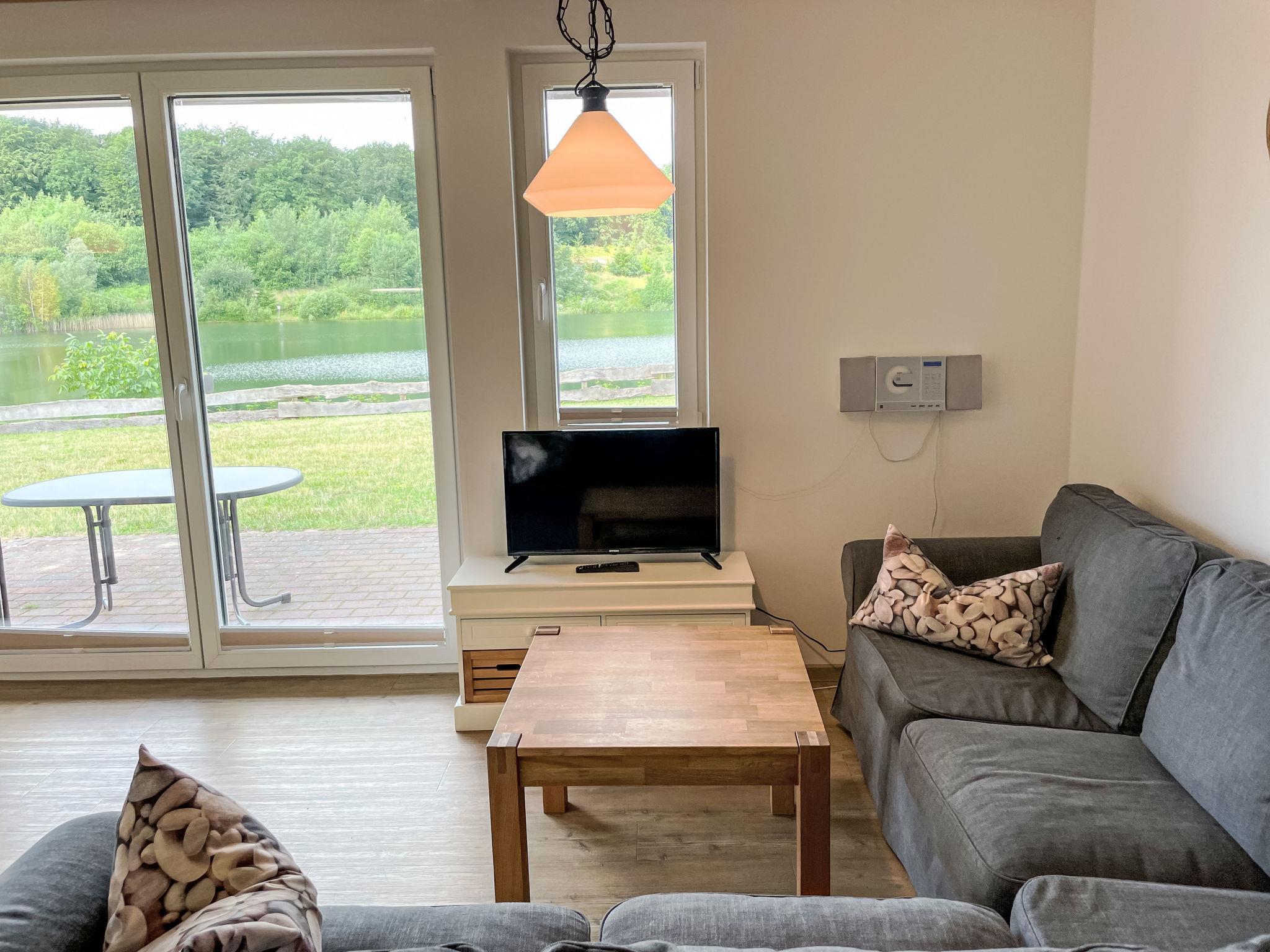 4-room house 95 m2 on 2 levels. Comfortable and modern furnishings: large living/dining room with satellite TV (flat screen). Exit to the terrace. 1 room with 1 double bed (180 cm, length 200 cm). Open kitchen (oven, dishwasher, 4 ceramic glass hob hotplates, toaster, kettle, electric coffee machine). Shower/WC. Gas heating. Upper floor: 1 room with 1 double bed (180 cm, length 200 cm). Exit to the balcony. 1 room with 2 beds (90 cm, length 200 cm). Exit to the balcony. Shower/WC, Sauna. Balcony, large terrace. Terrace furniture, deck chairs. Very beautiful view of the lake. Facilities: children's high chair. Internet (WiFi, free). Suitable for families. Maximum 2 pets/ dogs allowed.