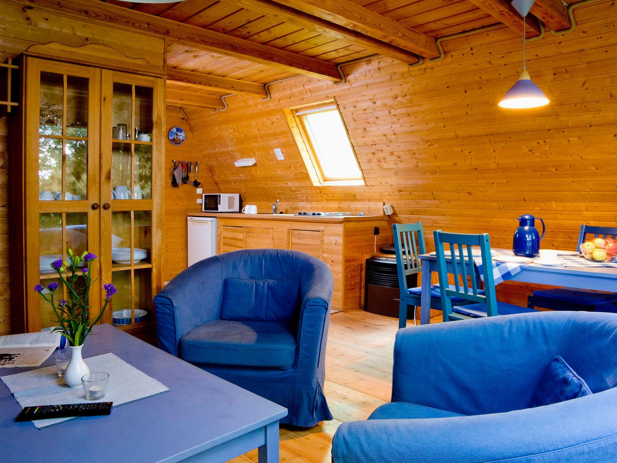 Ihr Ferienhaus liegt zwischen viel Grün und kleinen Teichen in einer parkartigen Landschaft. Die Ferienhäuser gibt es in unterschiedlichen Größen und mit unterschiedlicher Ausstattung: von der einfachen Unterkunft im Chaletstil bis zum großen, rustikalen Blockhaus. Je nach Typ sind sie zwischen 35 qm und 70 qm groß und verfügen über bis zu drei Schlafzimmer für bis zu acht Personen.