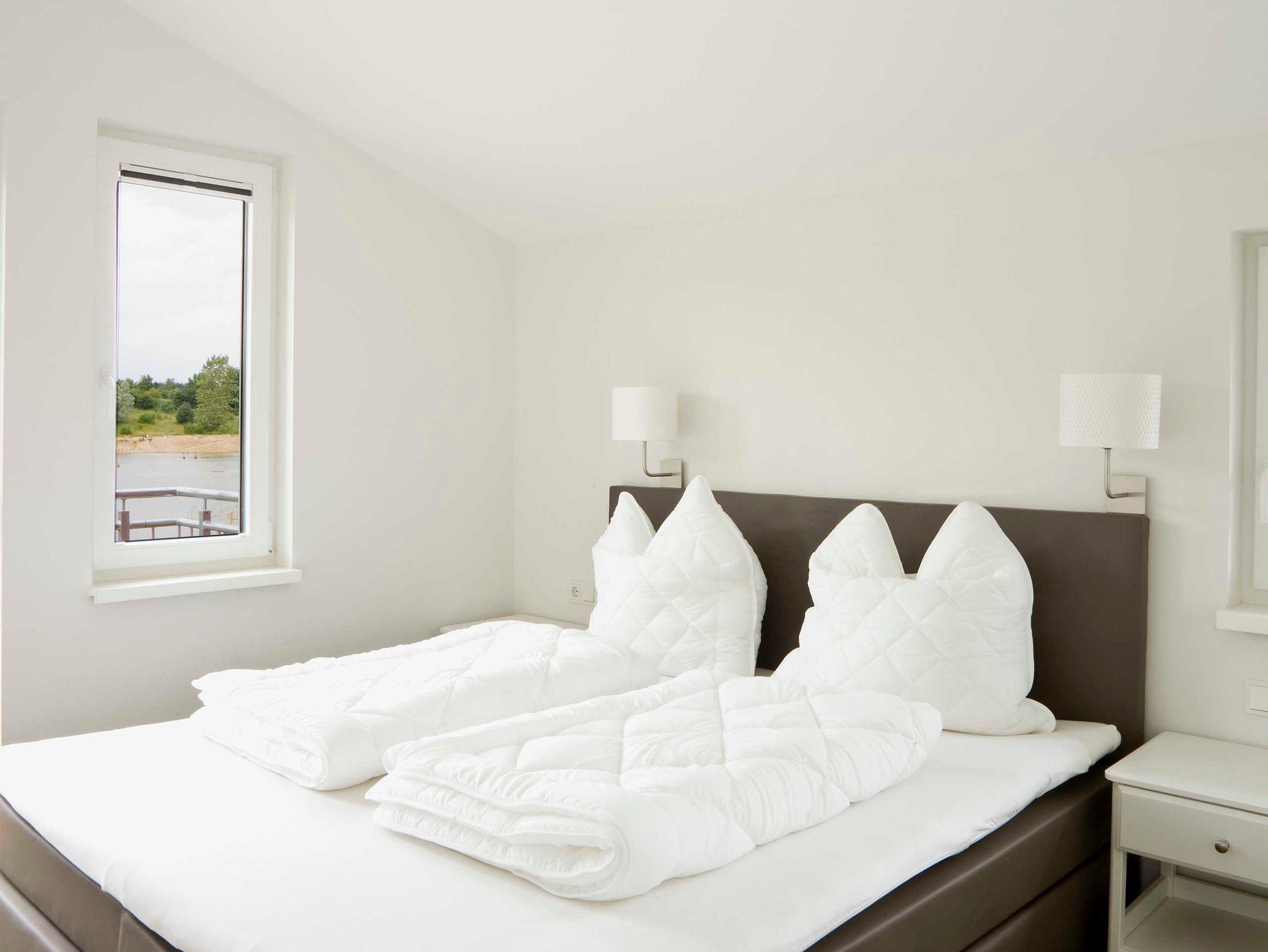3 Schlafzimmer, eigene Sauna, Küchenzeile mit Mikrowelle, Geschirrspüler und Backofen eigene Waschmaschine, zwei Bäder, Terrasse und Balkon zum See, Fußbodenheizung