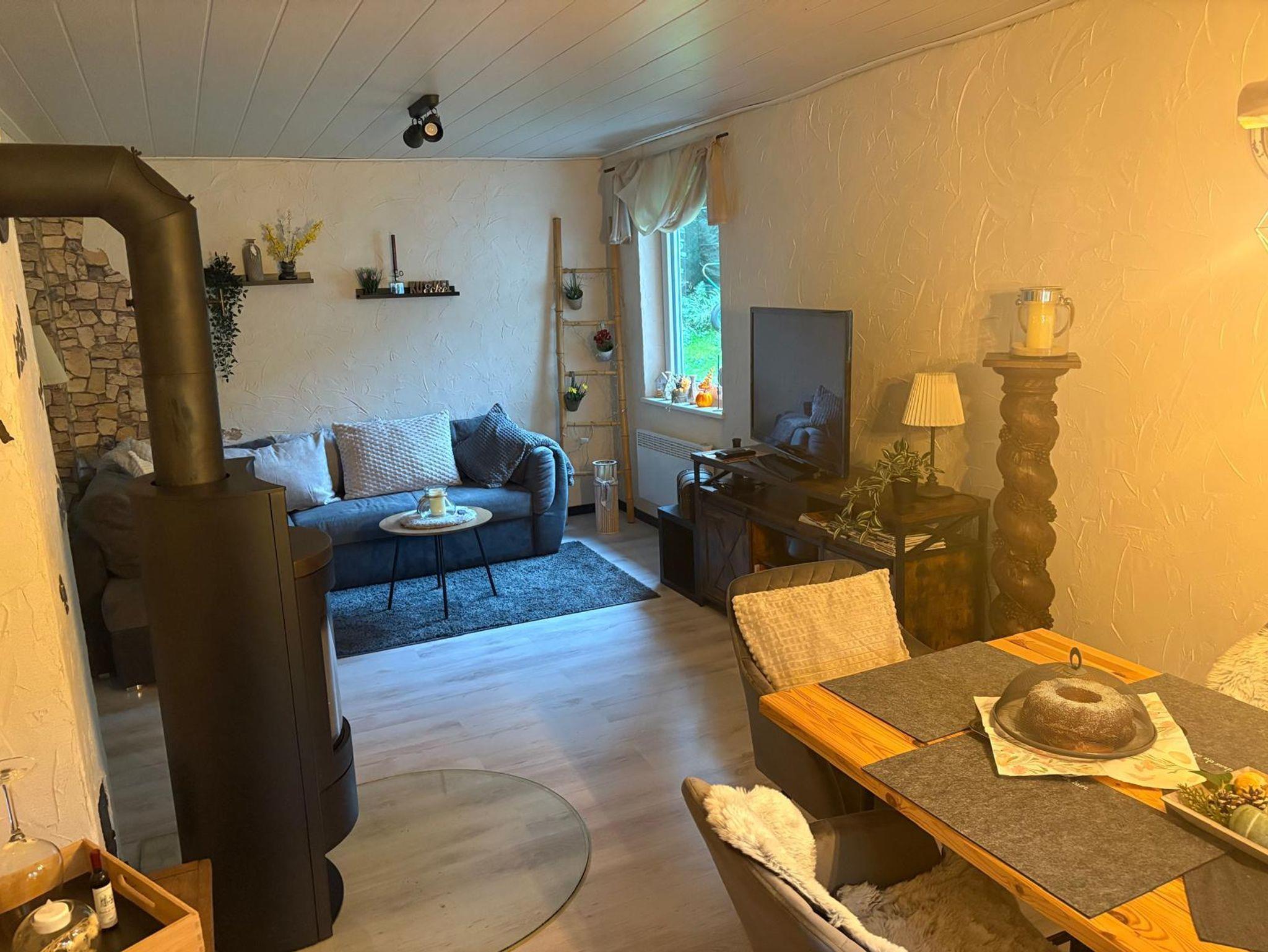 Der Wohnbereich verfügt über Satelliten-TV. Im Preis enthalten sind WLAN, Endreinigung, frische Bettwäsche, Handtücher, Heizkosten sowie Kaminholz für entspannte Abende am Feuer. Ein Holzofen, ein Schaukelstuhl und die bequeme Schlafcouch sorgen für eine besonders behagliche Atmosphäre.