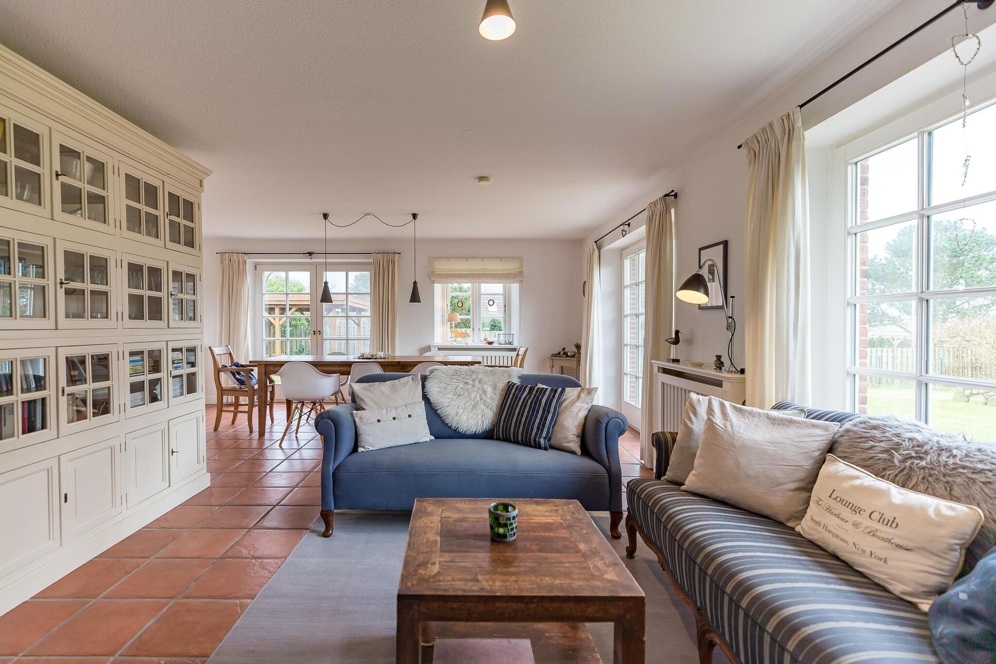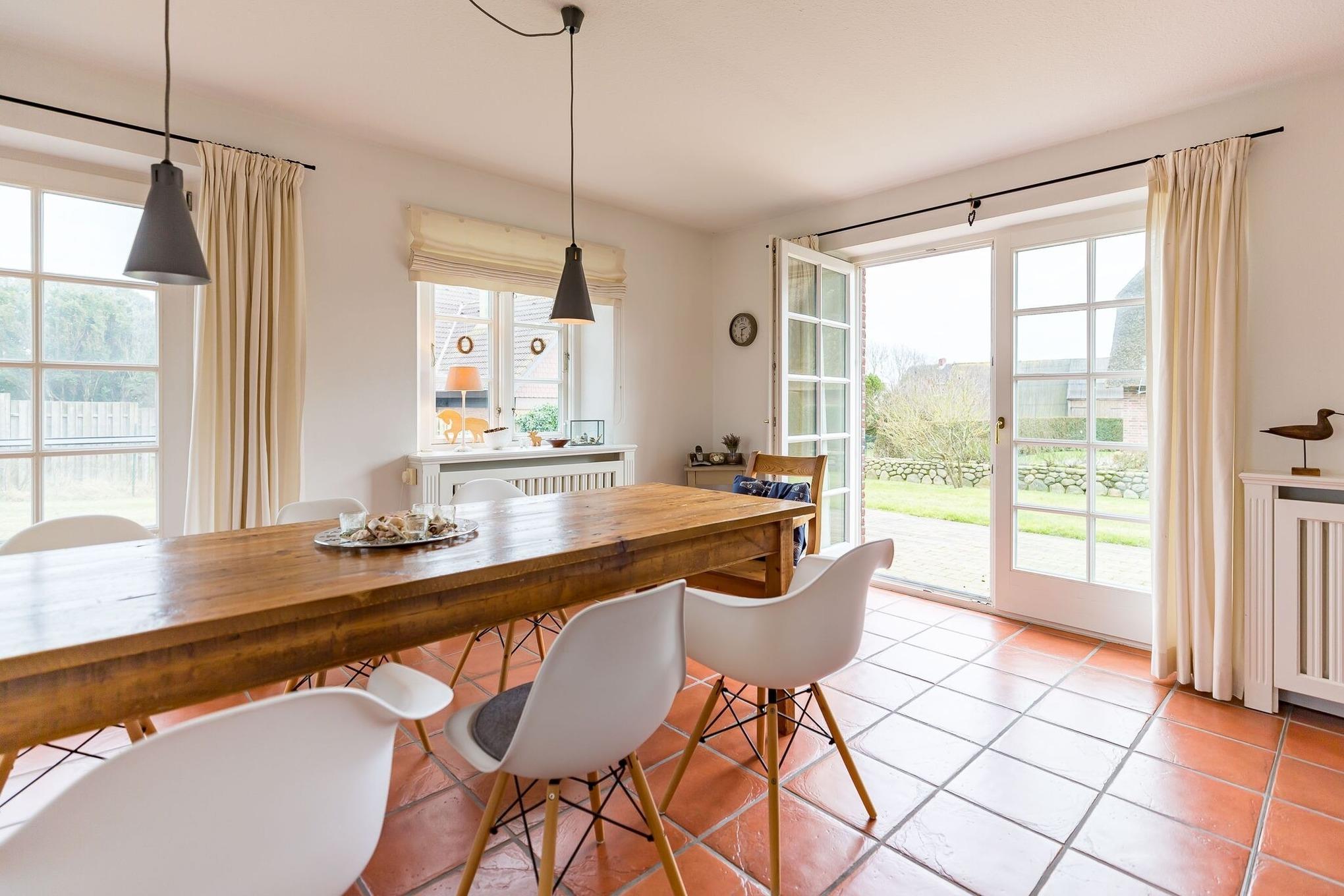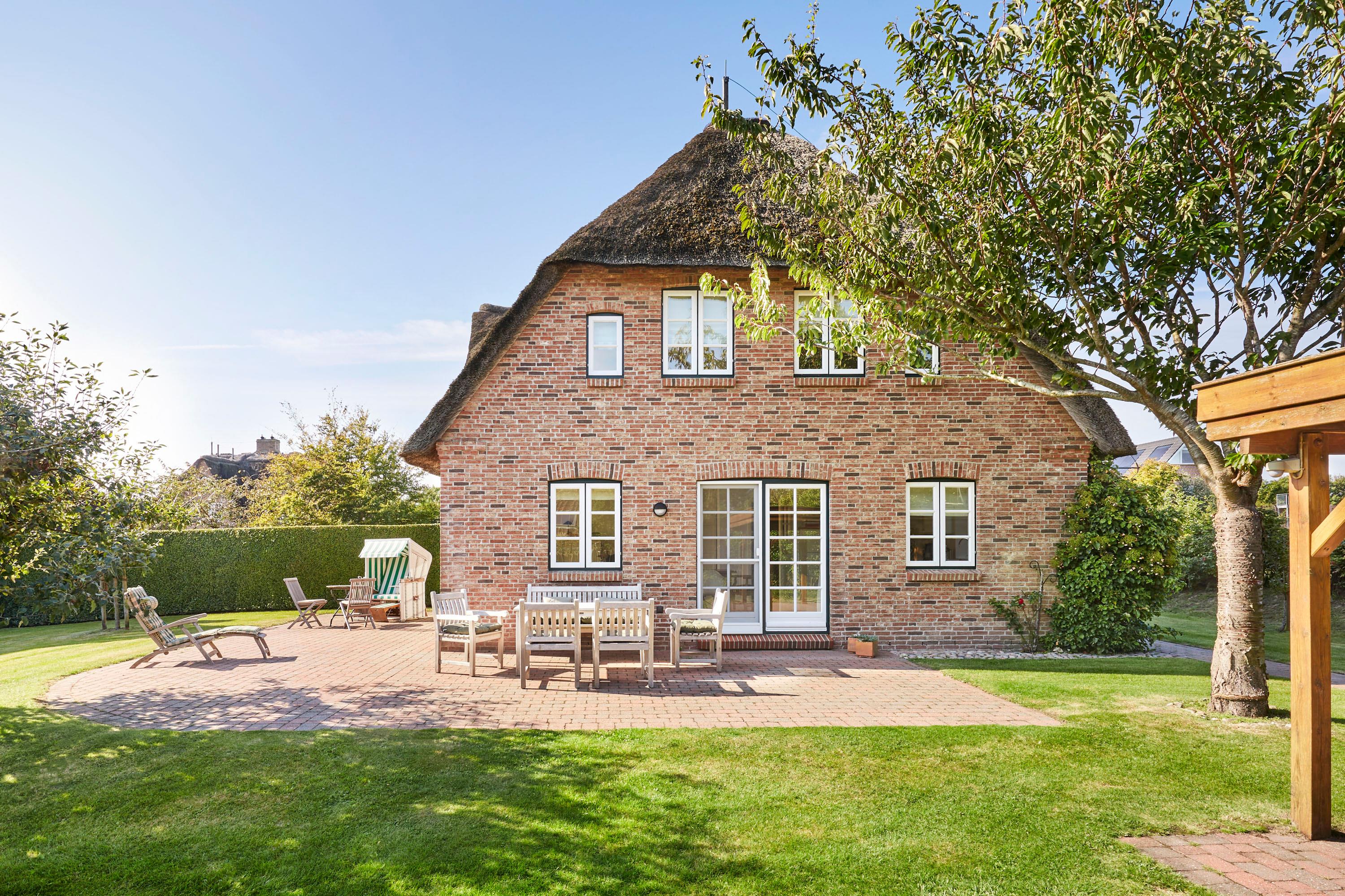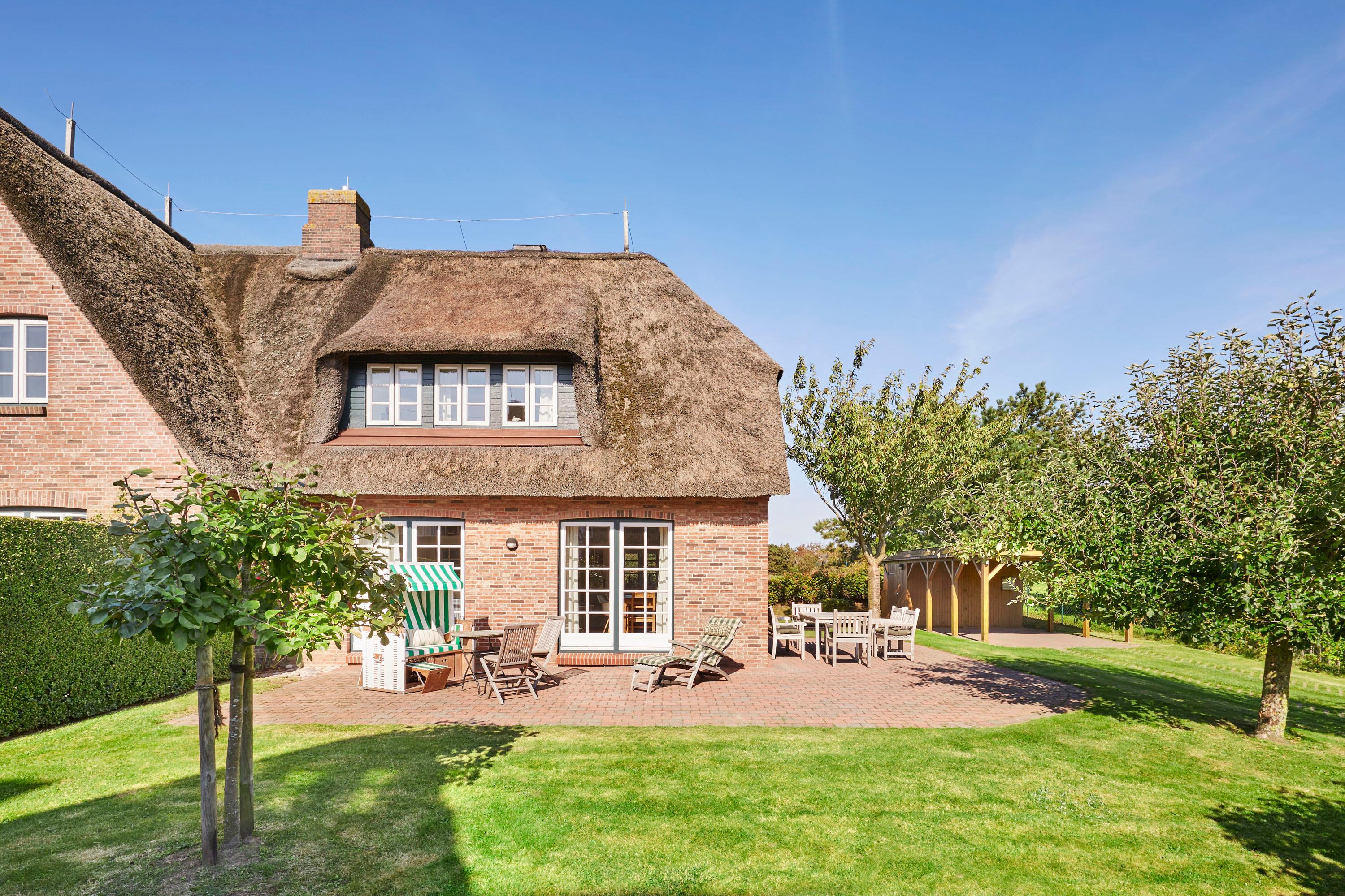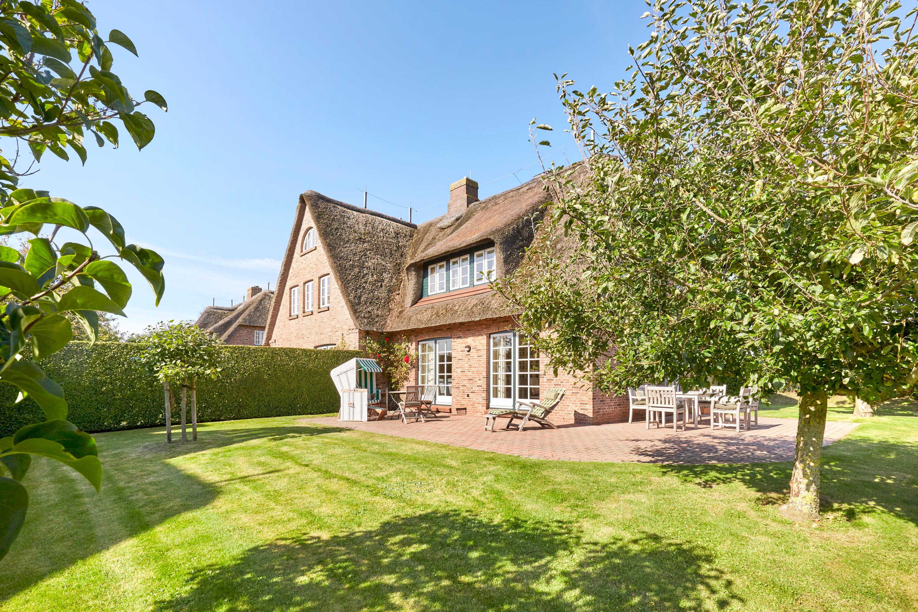 Nur wenige Gehminuten vom Meer und Naturstrand entfernt liegt das wunderbar gepflegte Reetdachobjekt auf einem 500 qm großen Grundstück an der Traumstraße. Hier können Sie Nordseeurlaub pur genießen. Morgens weht der Wind die salzhaltige Luft vom Meer direkt durch Ihre großzügige Haushälfte mit einem lichtdurchfluteten Wohn- und Essbereich. Entweder gehen Sie nun sofort zum Strand, oder Sie genießen einfach einen schönen Tag im Haus oder auf einer der beiden Sonnenterrassen. Die gemütlich eingerichtete Haushälfte bietet jede Menge Platz und viel Komfort für einen erholsamen Urlaub!