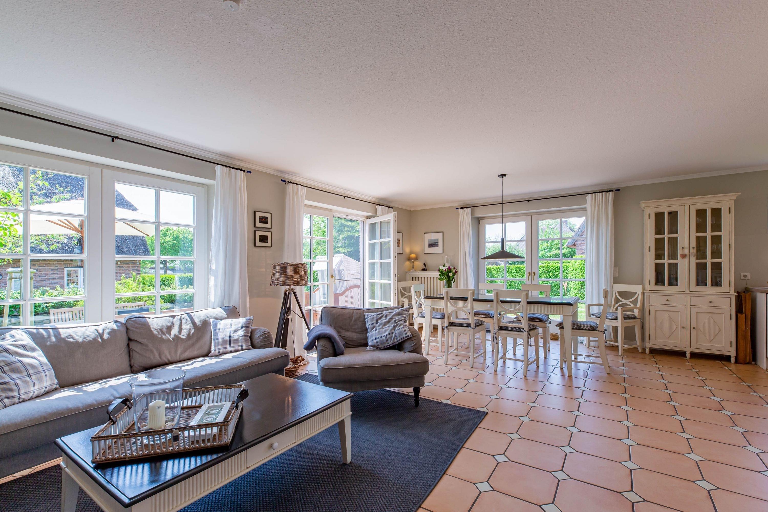 Träumen Sie auch gerade vom Meer und Strand? Nur wenige Gehminuten vom Strand entfernt liegt das wunderbar gepflegte Reetdachobjekt an der Traumstraße. Hier können Sie Nordseeurlaub pur genießen. Morgens weht der Wind die salzhaltige Luft vom Meer direkt durch Ihre großzügige Haushälfte. Entweder gehen Sie nun sofort an den Strand oder genießen einfach einen schönen Tag im Haus oder Garten. Die gemütlich eingerichtete Haushälfte bietet jede Menge Platz und viel Komfort für einen erholsamen Urlaub. Sie werden Ihren Aufenthalt genießen. Weitere Bilder und einen Film sehen Sie unter www.reetdachhaus-hedehusum.de