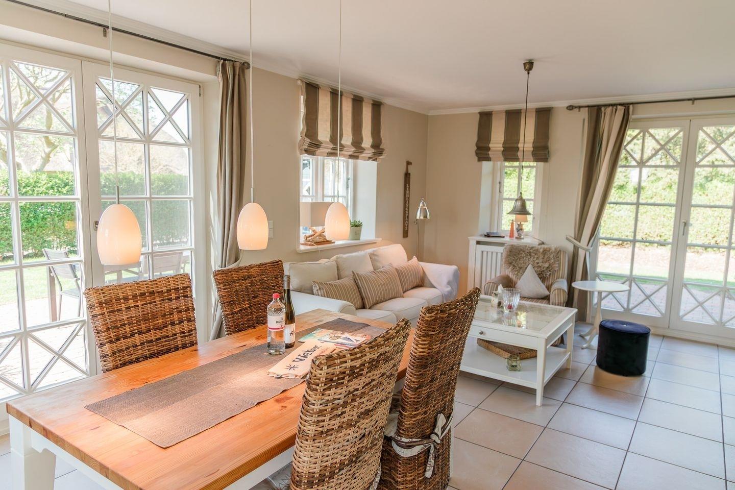Willkommen in diesem charmanten, strandnahen Reetdachhaus "Carla Marie" in Hedehusum auf Föhr. Es bietet die perfekte Kombination aus Komfort, Ruhe und nordischem Charme. Die hochwertig ausgestattete Haushälfte ist ideal für bis zu 4 Erwachsene und einem Kleinkind und eignet sich hervorragend für enstpannte Urlaubstage in angenehmer, ruhiger Umgebung.
