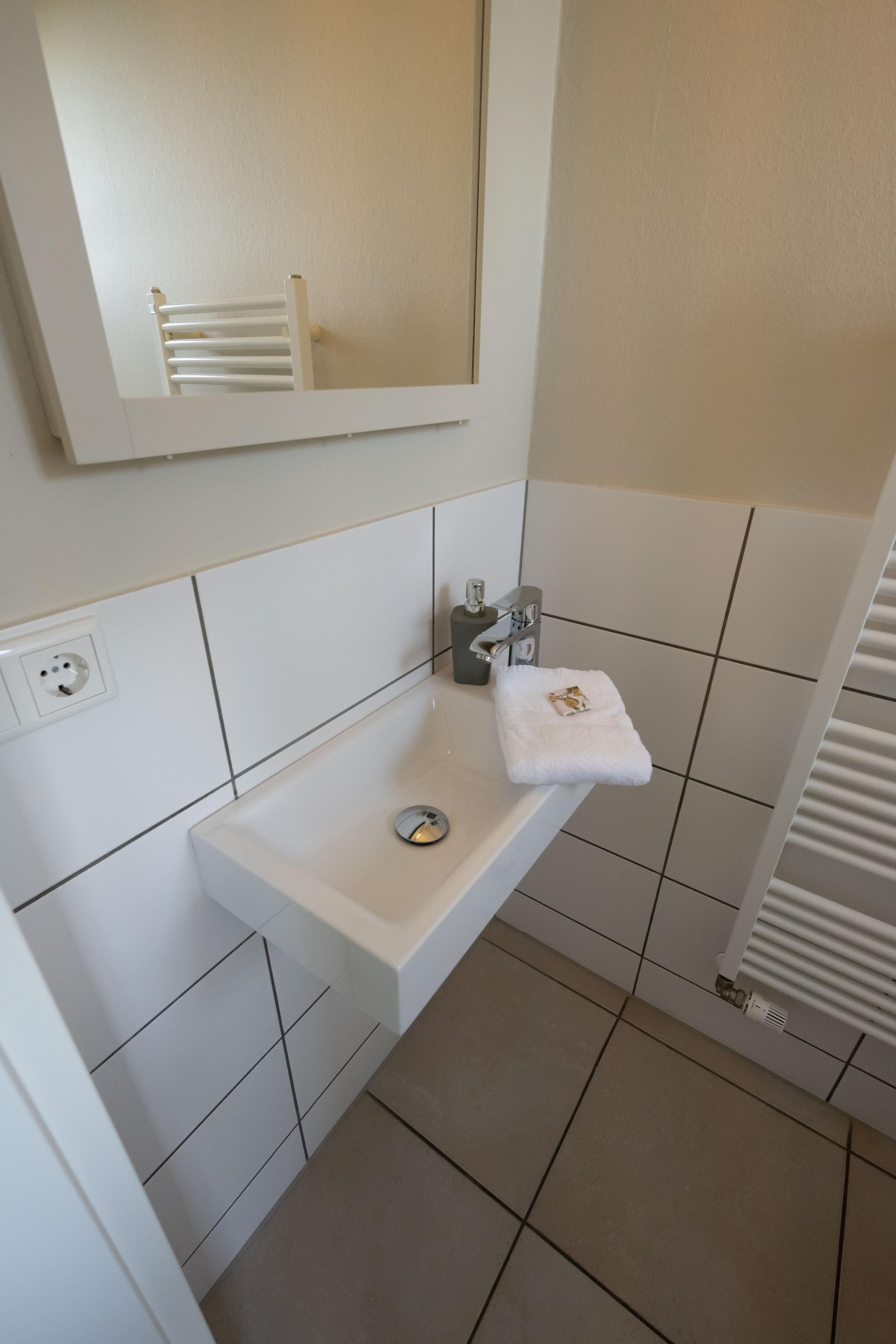 Ein modernes Duschbad mit Fußbodenheizung ist hier auch zu finden.
