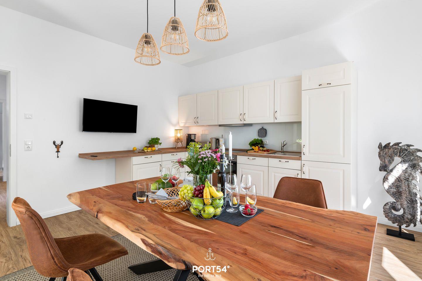 Zwei hochwertige Wohn- und Essbereiche mit jeweils 2 voll ausgestatteten Küchen und modernen Geräten laden dazu ein, köstliche Mahlzeiten zuzubereiten.
