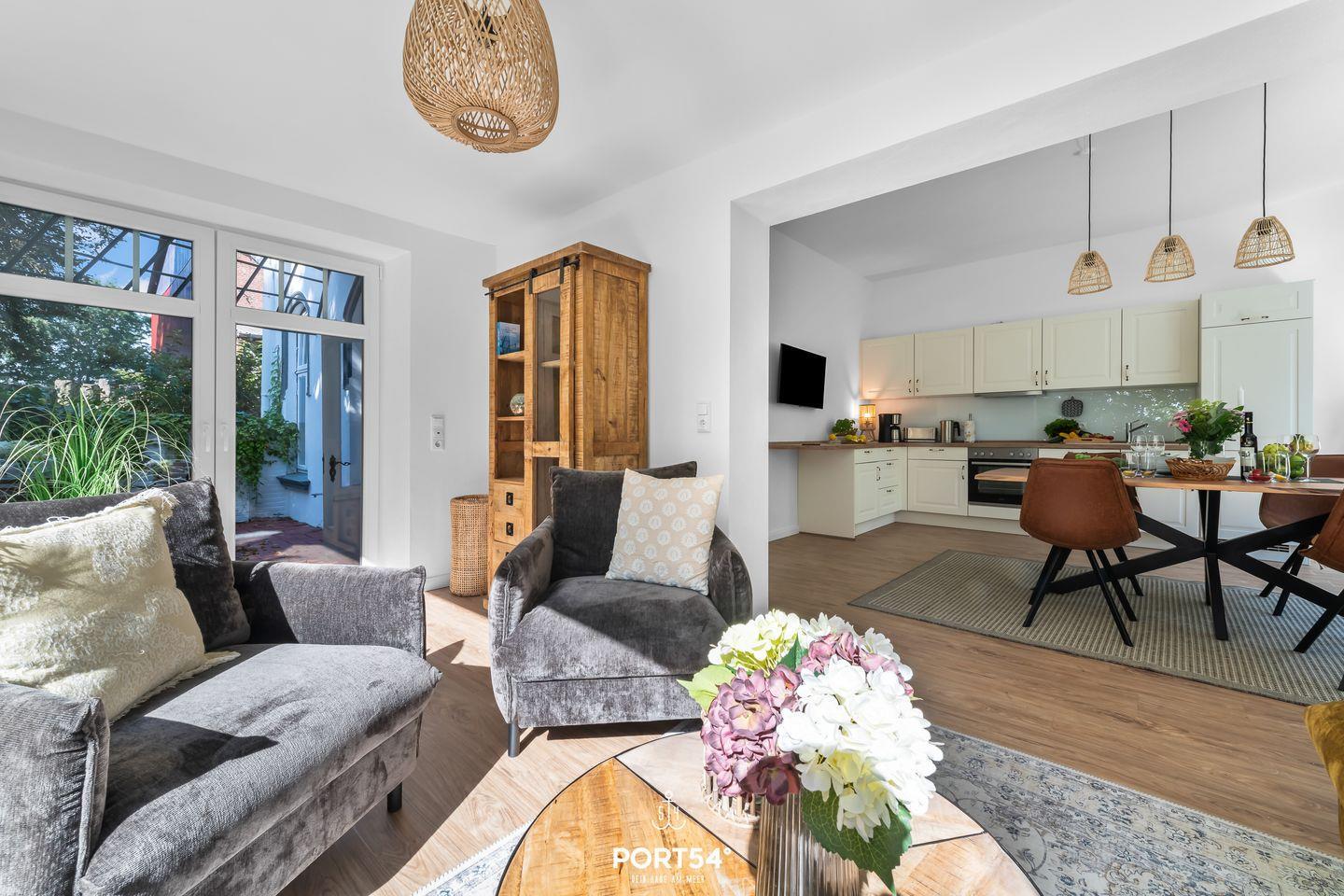 Auster- exklusive Einrichtung auf 120 m² mit Terrasse und Strandkorb