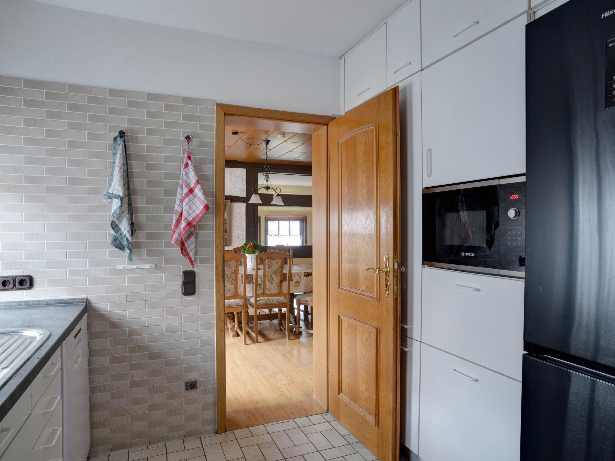 Beautiful, historical working farm, 3 storeys, from the 19th century, renovated in 2019, surrounded by trees and meadows. In the district of Hohe 5.3 km from the centre of Hehlen, 5 km from the centre of Bodenwerder, in a quiet position, 400 m from the edge of the forest. For shared use: large garden 1'500 m2 (fenced) with lawn and trees. Terrace (20 m2), garden furniture, barbecue, children's playground (slide, swing). In the complex: fitness room (extra). Storage room for bicycles, central heating system, washing machine (for shared use, extra), drying room. Parking (for 10 cars) on the premises, single garage (extra) at the house. Shop 7 km, grocery 5 km, supermarket 7 km, restaurant 5 km, bakery 5 km, bus stop "Hohe" 20 m, ferry "Hehlen" 8 km, outdoor swimming pool 8 km, indoor swimming pool 9 km. Walking paths from the house 200 m. Nearby attractions: Welterbe Corvey 33 km, Porzellanmanufaktur Fürstenberg 40 km. Well-known lakes can easily be reached: Humboldtsee 28 km. Please note: car recommended. The owner does not accept any youth groups. Garden seating area (200 m2) and the second terrace (9 m2) are available for shared use (both terraces are not visible to each other). Finnish steam tub (available 01.04.-30.11.) for shared use.