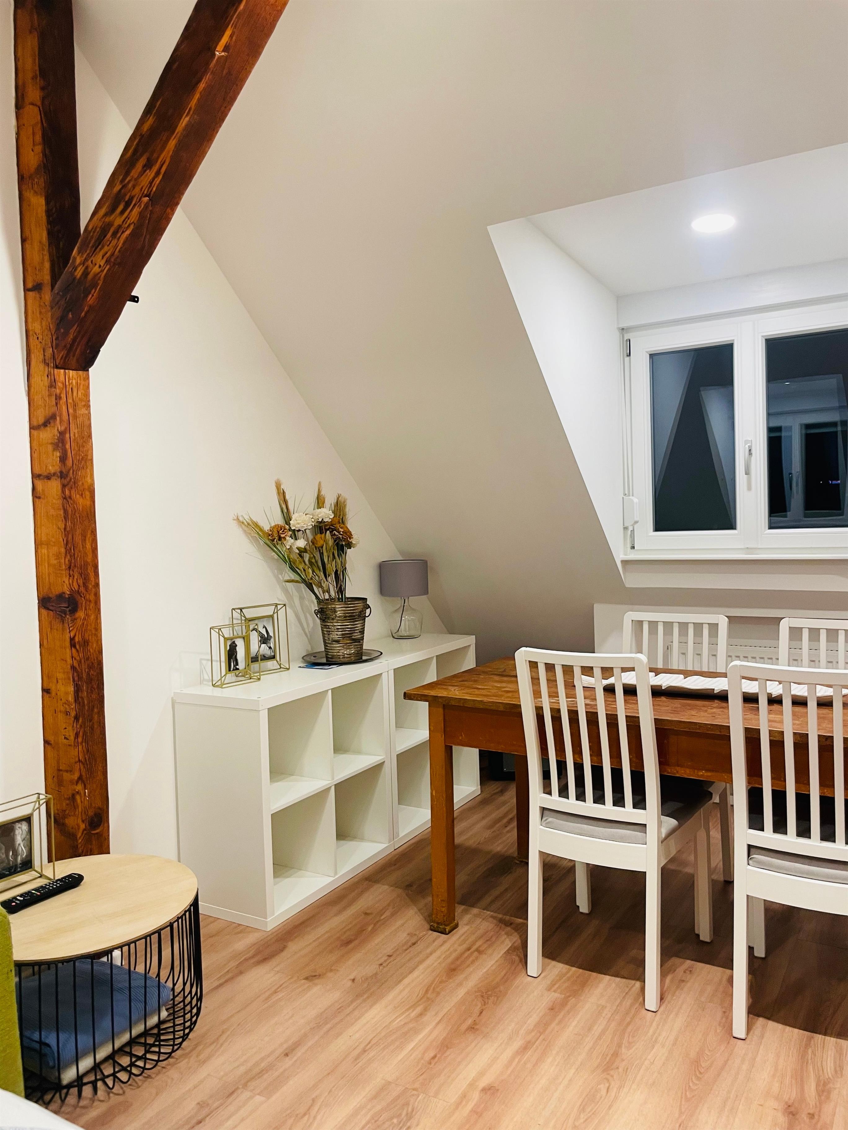 Die Ferienwohnung befindet sich im Dachgeschoss eines sanierten Altbaus aus der Jahrhundertwende im Stadtkern von Heidelberg (Bergheim). Treppensteigen ist erforderlich, da das Haus nicht über einen Fahrstuhl verfügt.