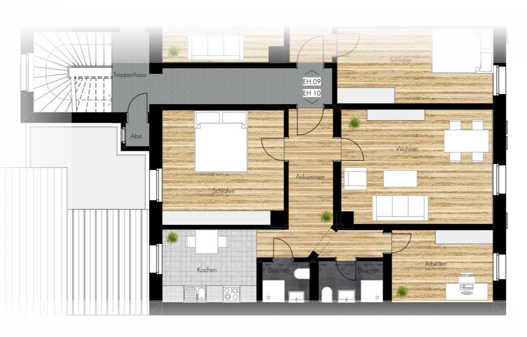 Ein Personenaufzug verbindet komfortabel die Stockwerke vom EG bis zum 3. OG miteinander, so dass ein bequemer Zugang zur Wohnung gewährleistet ist. Die Wohnung befindet sich im 3. OG.